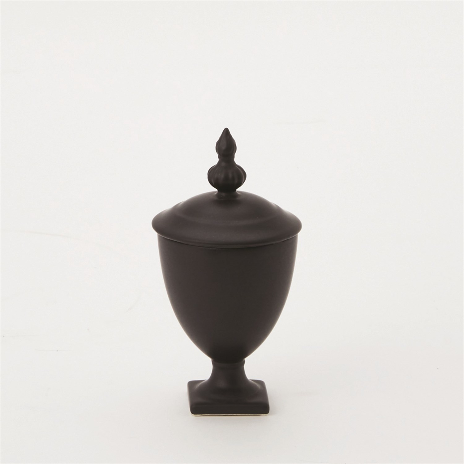 The Beaufort collection of ceramic urns was inspired by the fluted urn-shaped finials that crown a green japanned bedstead in the Governor's Palace in Colonial Williamsburg's Historic Area. The cornice and finials for the bed are based on a Hepplewhite design for a "Venetian" bedstead.