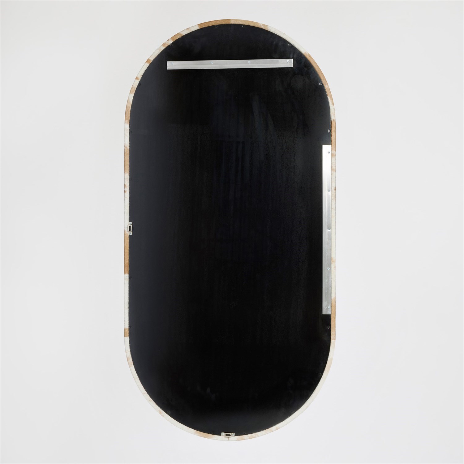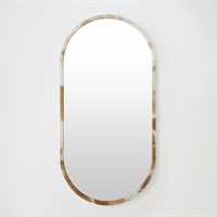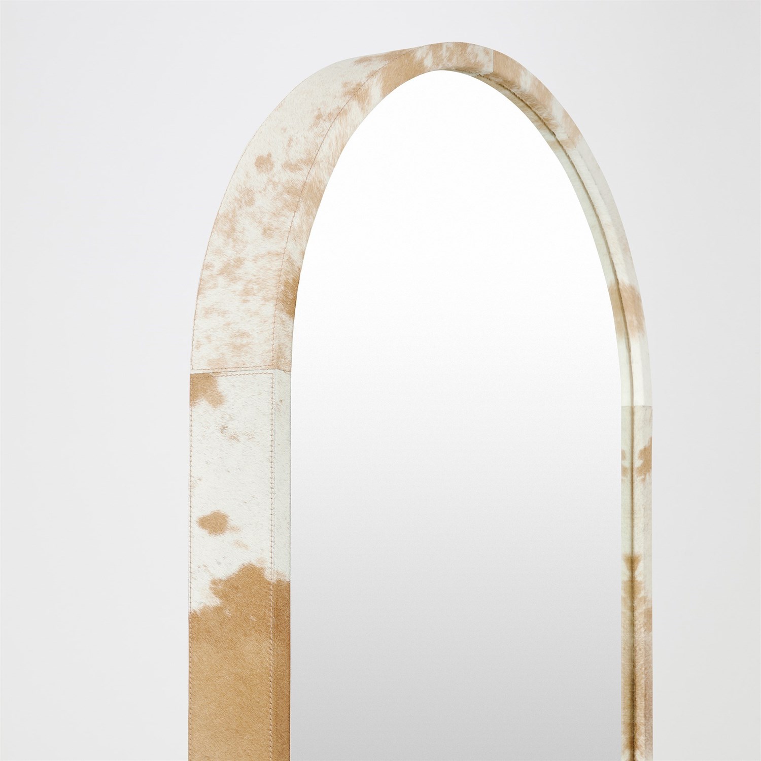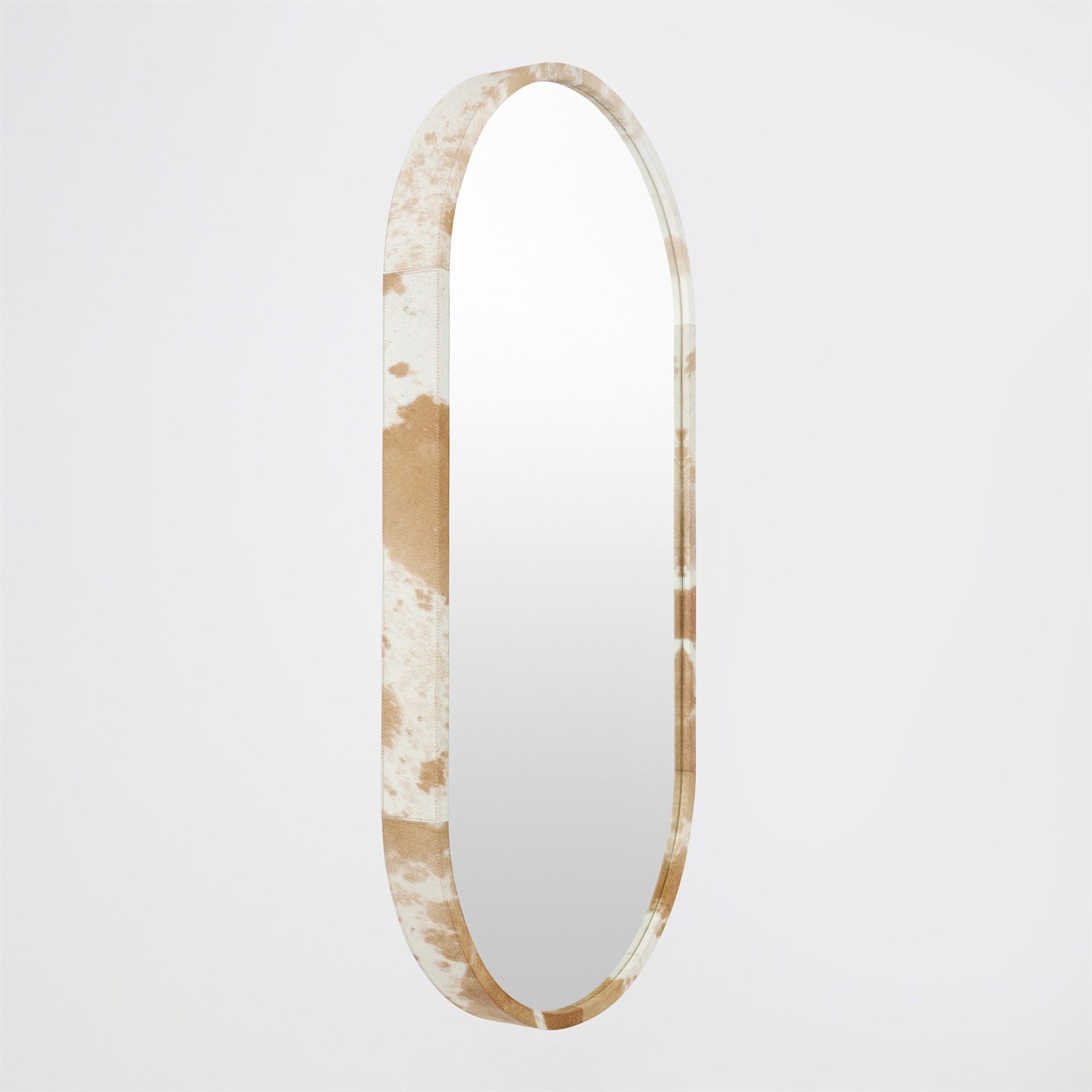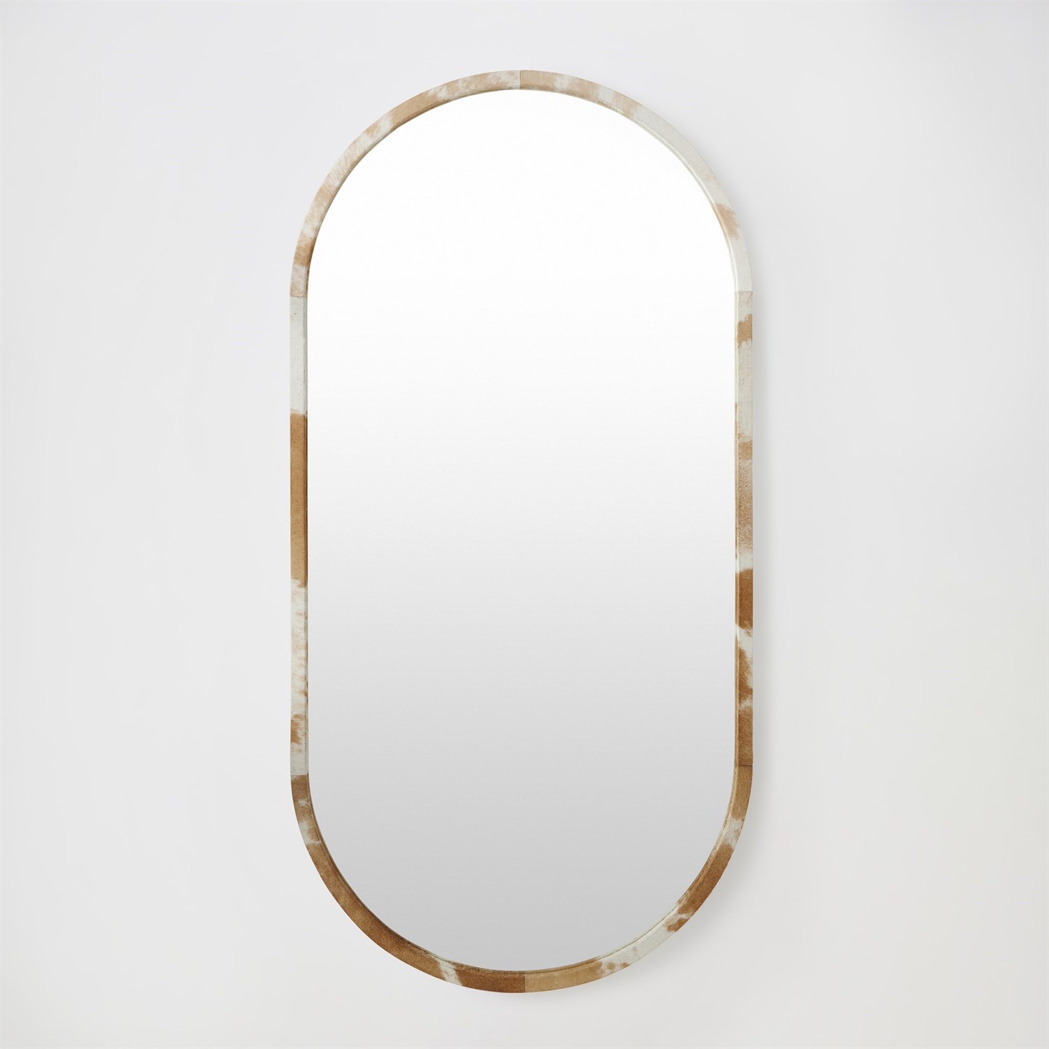 The Brindle Mirror is a captivating juxtaposition of an ultra modern capsule shape, with the warm texture of natural cowhide. The overscaled frame offers depth and character to any space, residential or commercial, for a beautiful accent filled with bespoke character and charm.