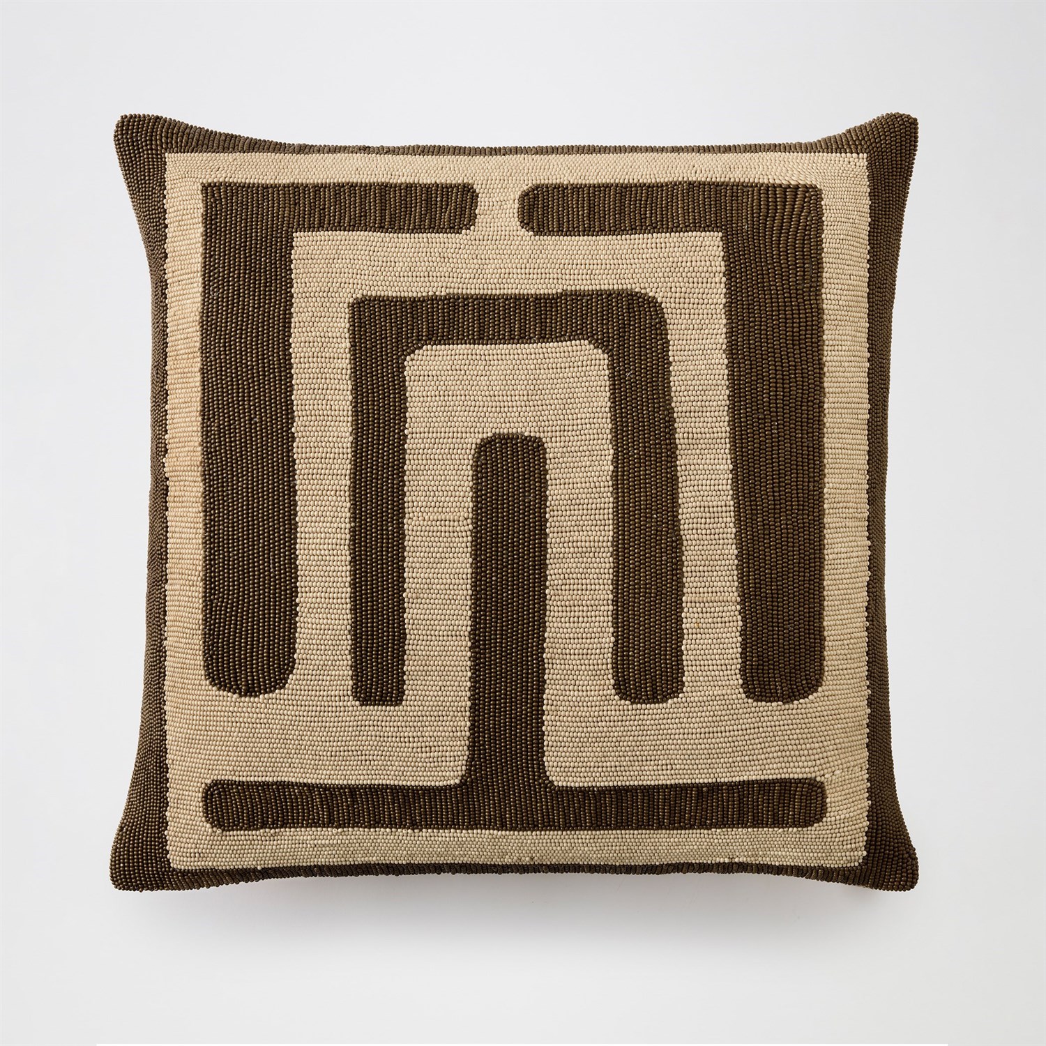 The Carthago Beaded Pillows draw their pattern from the same ancient Roman key latch that inspired the Carthago Console. Hand-beaded on dyed canvas with a smooth velvet back, each piece emphasizes pure form and line through meticulous beadwork. The motif's strong geometry and restrained palette give Carthago a timeless authority. The key that opens doors serves with honor.