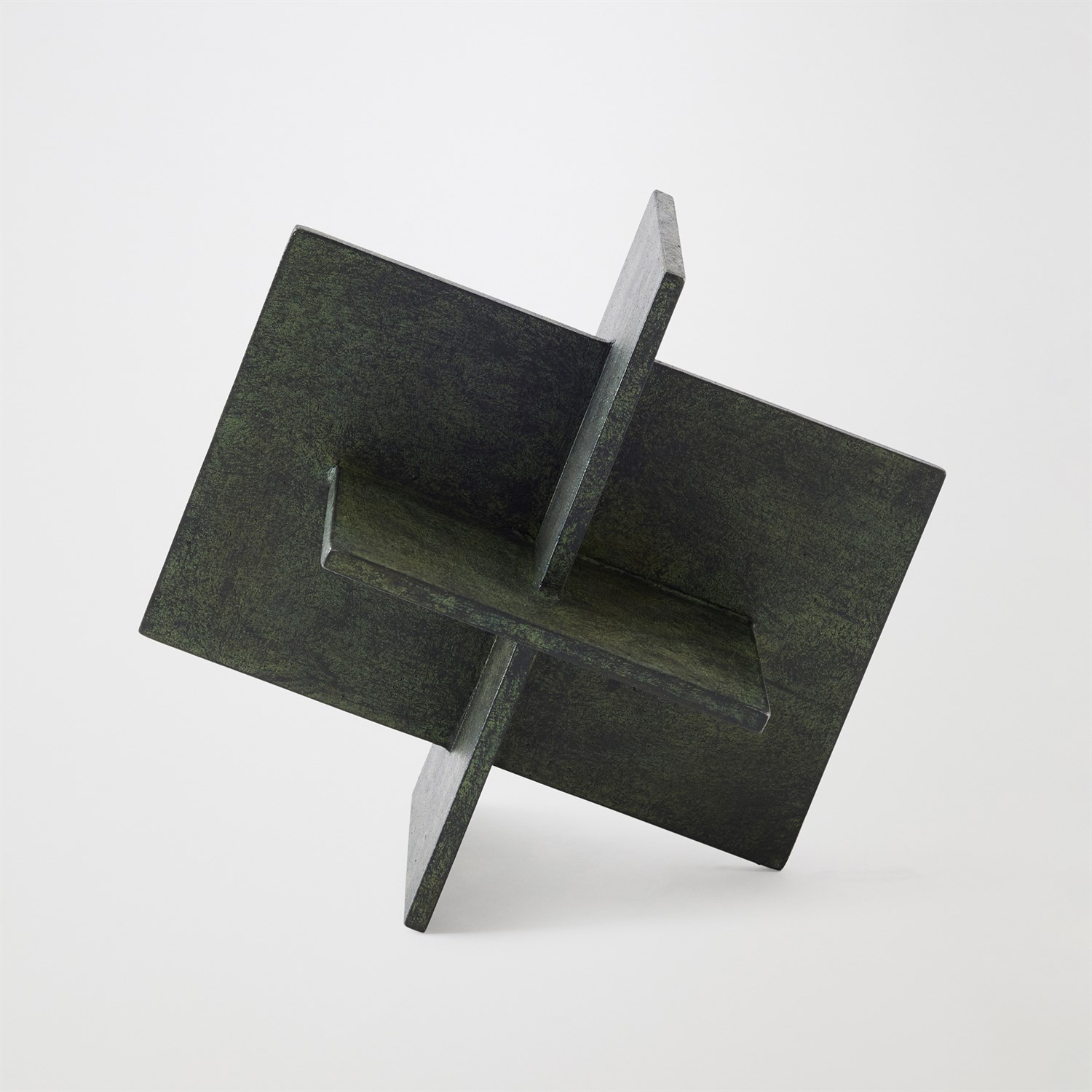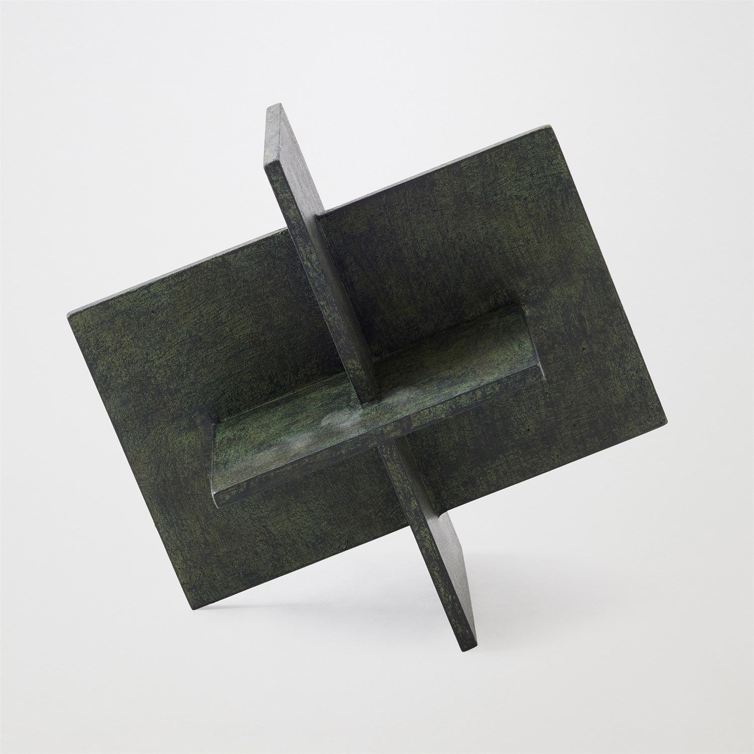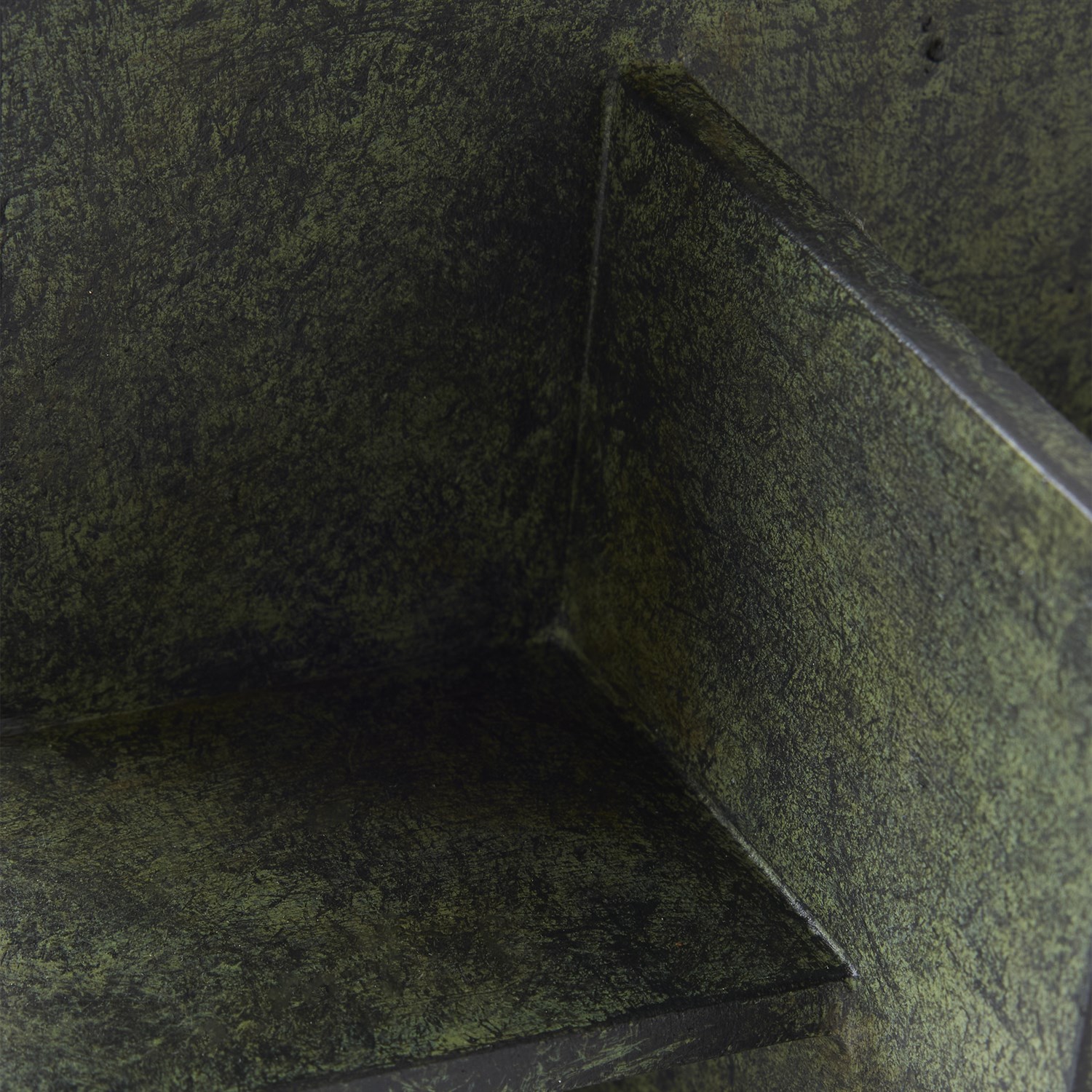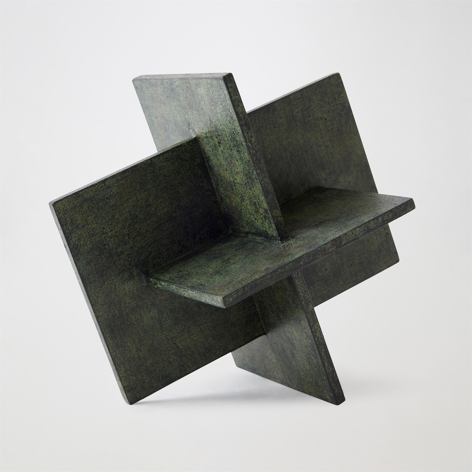 The Cubist Sculpture is a striking abstract form that can be displayed individually or paired as sculptural bookends. Its bold geometric design brings modern artistry and refined craftsmanship to any space. Expertly cast in iron, it is offered in sophisticated bronze or verdi finishes, each piece sold separately.