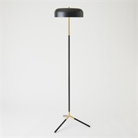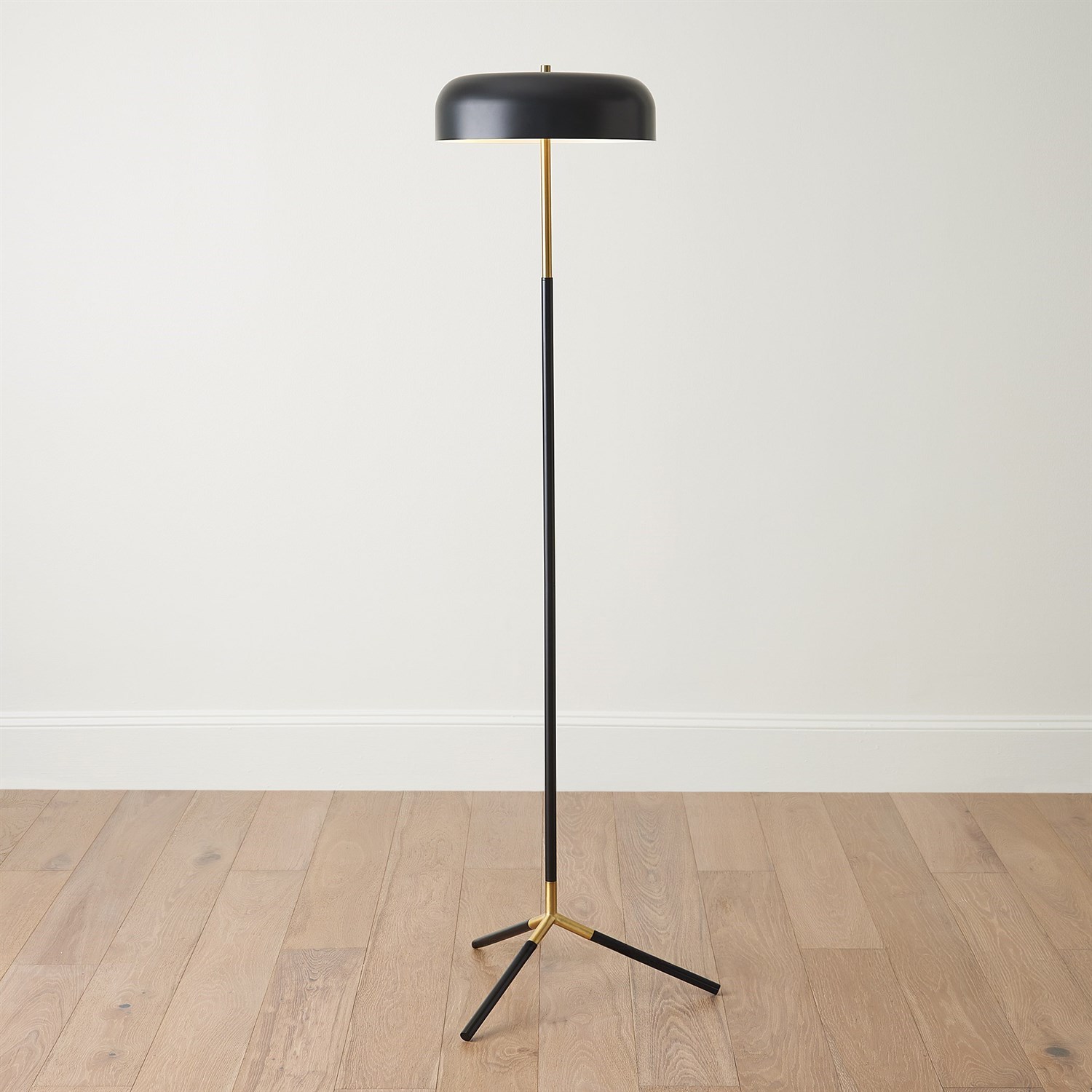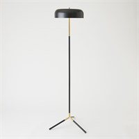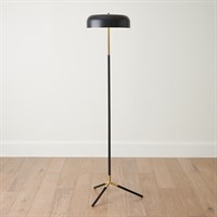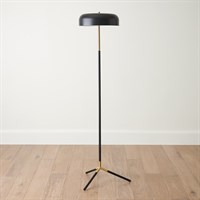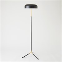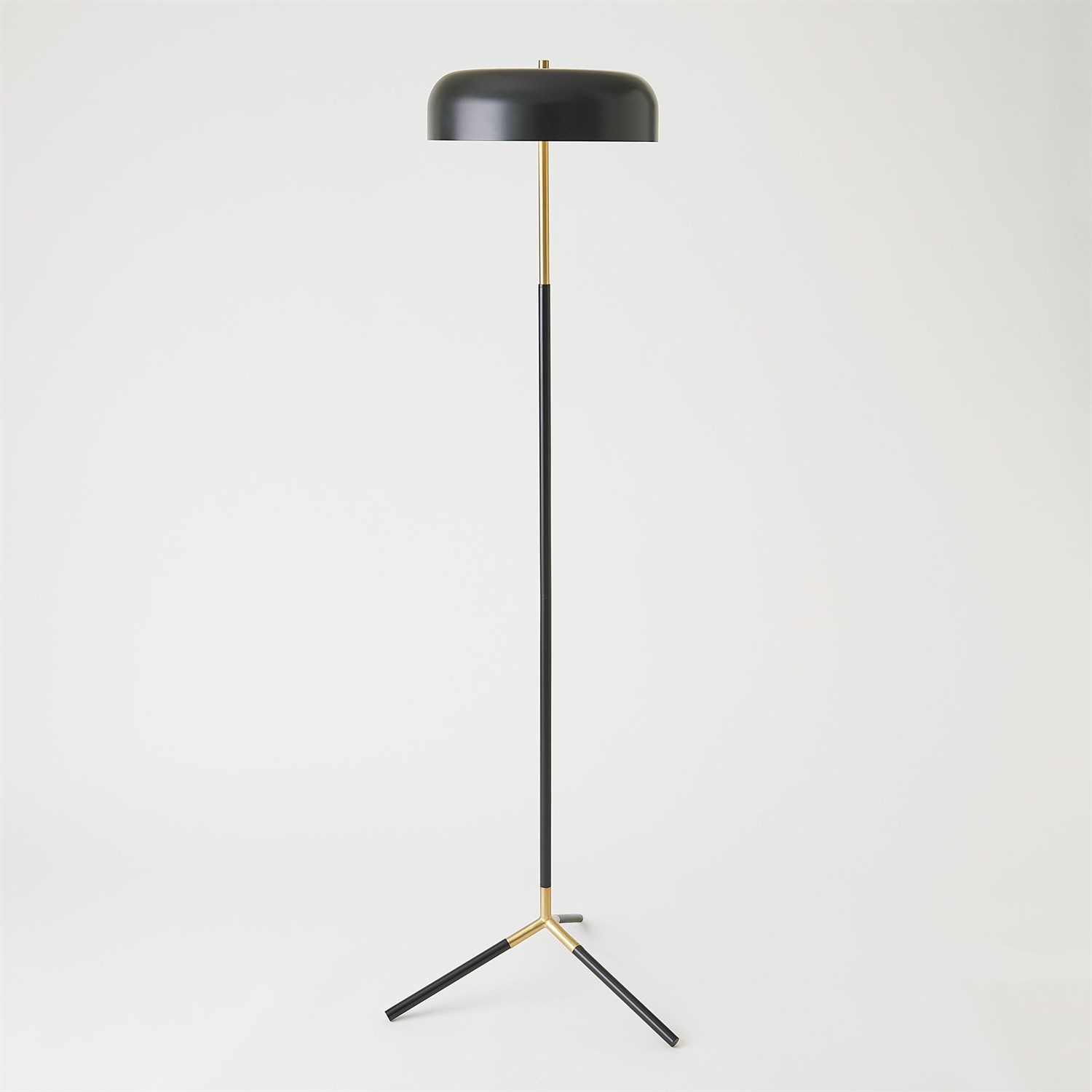 Striking in its simplicity, the Dome Floor Lamp is crafted from iron with a matte black finish and is accented with brass. A rounded shade and slender tripod base complete the contemporary silhouette.