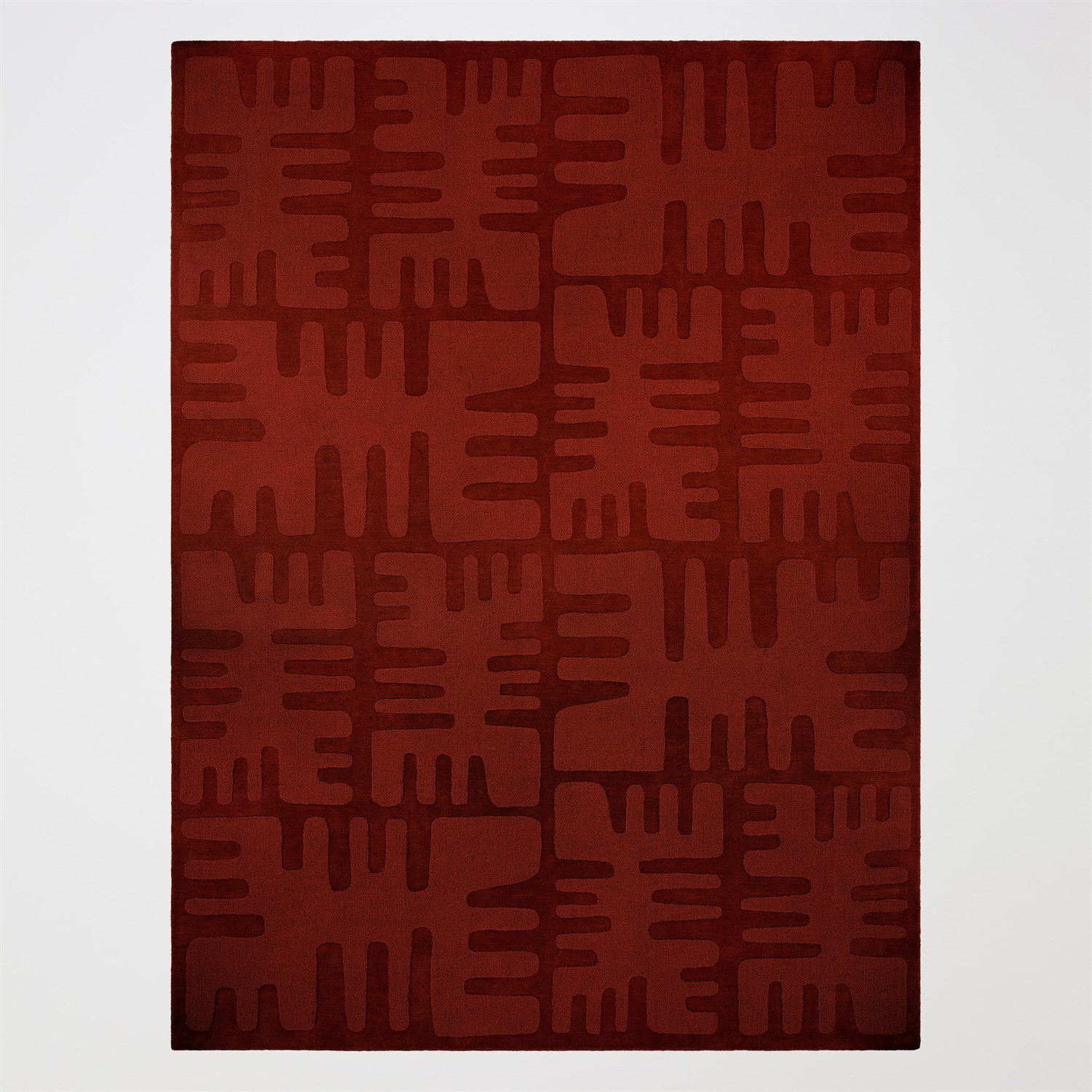 The Duafe Rugs translate the geometry of an ancient key latch into a field of texture and shadow. Hand-loomed in 100% wool with a 12mm pile, each rug combines looped and hand-carved cut piles for dimensional relief. The pattern - rhythmic and restrained - shifts gently as light moves across it. Offered in natural sand and earthen rust tones, the Duafe Rugs anchor a room in structure and craft. A path is made by walking it. What lies beneath our feet shapes where we go.