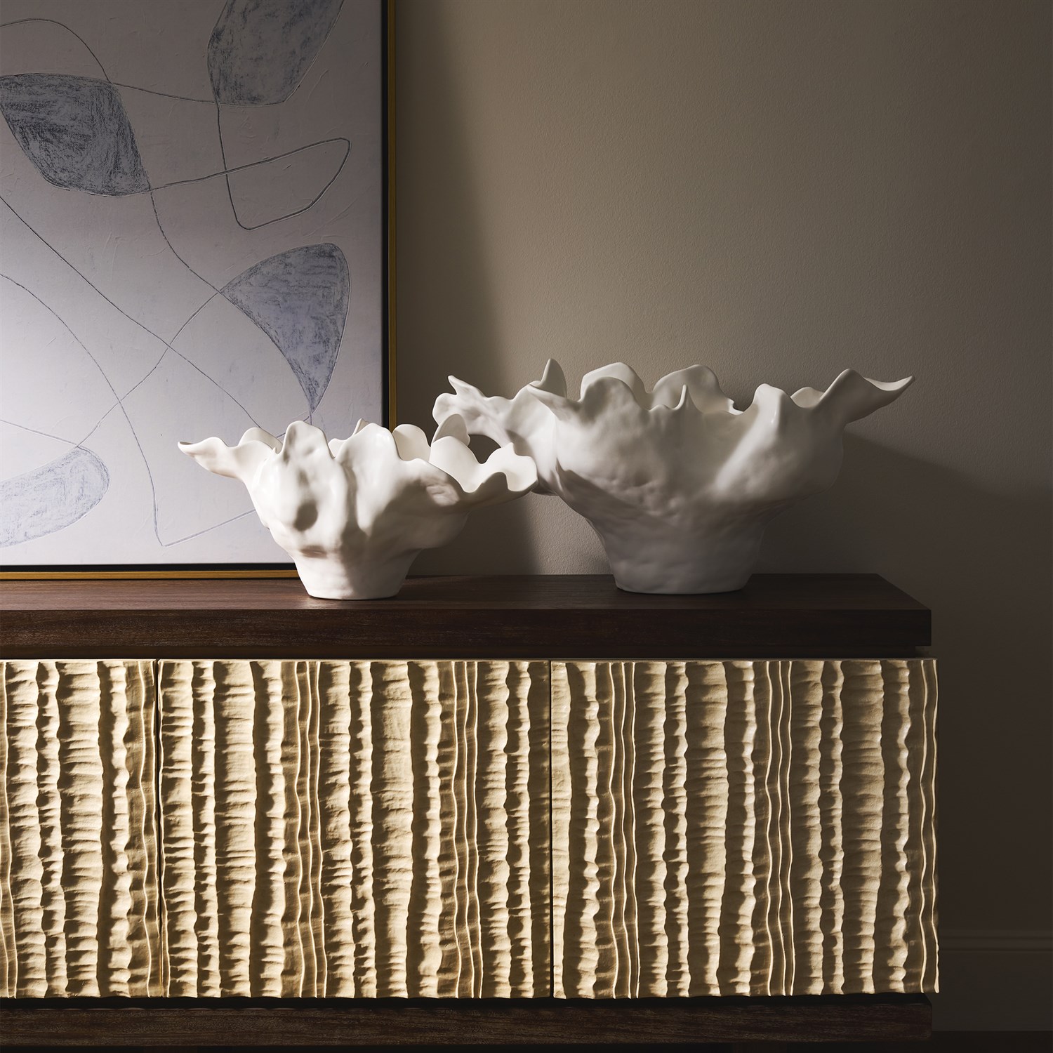 The Emory Cabinet front panels are made from resin and perfectly juxtapose the wire-brushed eucalyptus frame. Complete with three drawers for storage and six adjustable shelves.