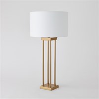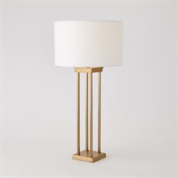 A study in contemporary design, the Four Post Pillar Table Lamp features a metal frame finished in satin brass. Topped with an off-white cotton hardback shade, it balances sleek aesthetics with soft illumination.