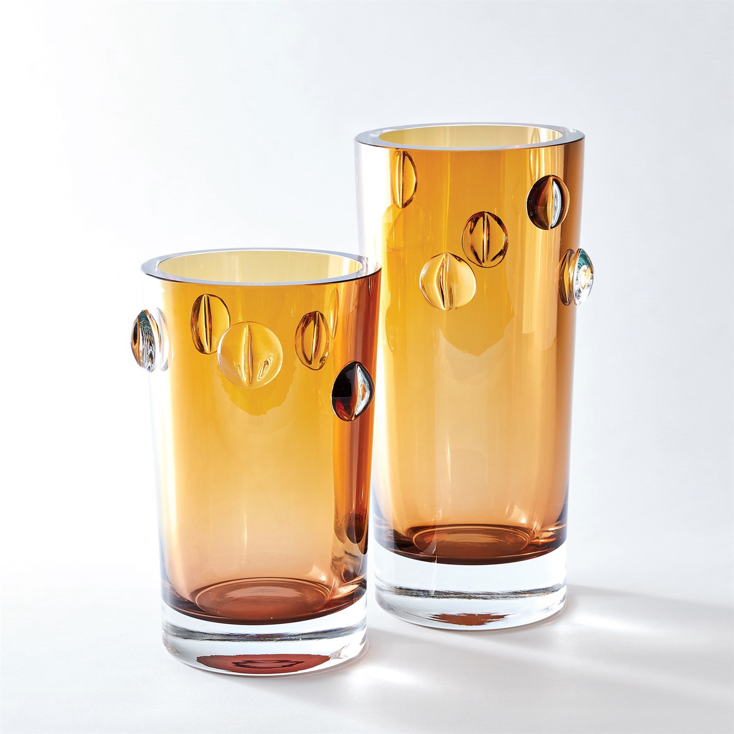 Rich amber hand blown art glass crafted in Poland will be the centerpiece of any setting. Handmade by artisans, each piece is unique.
