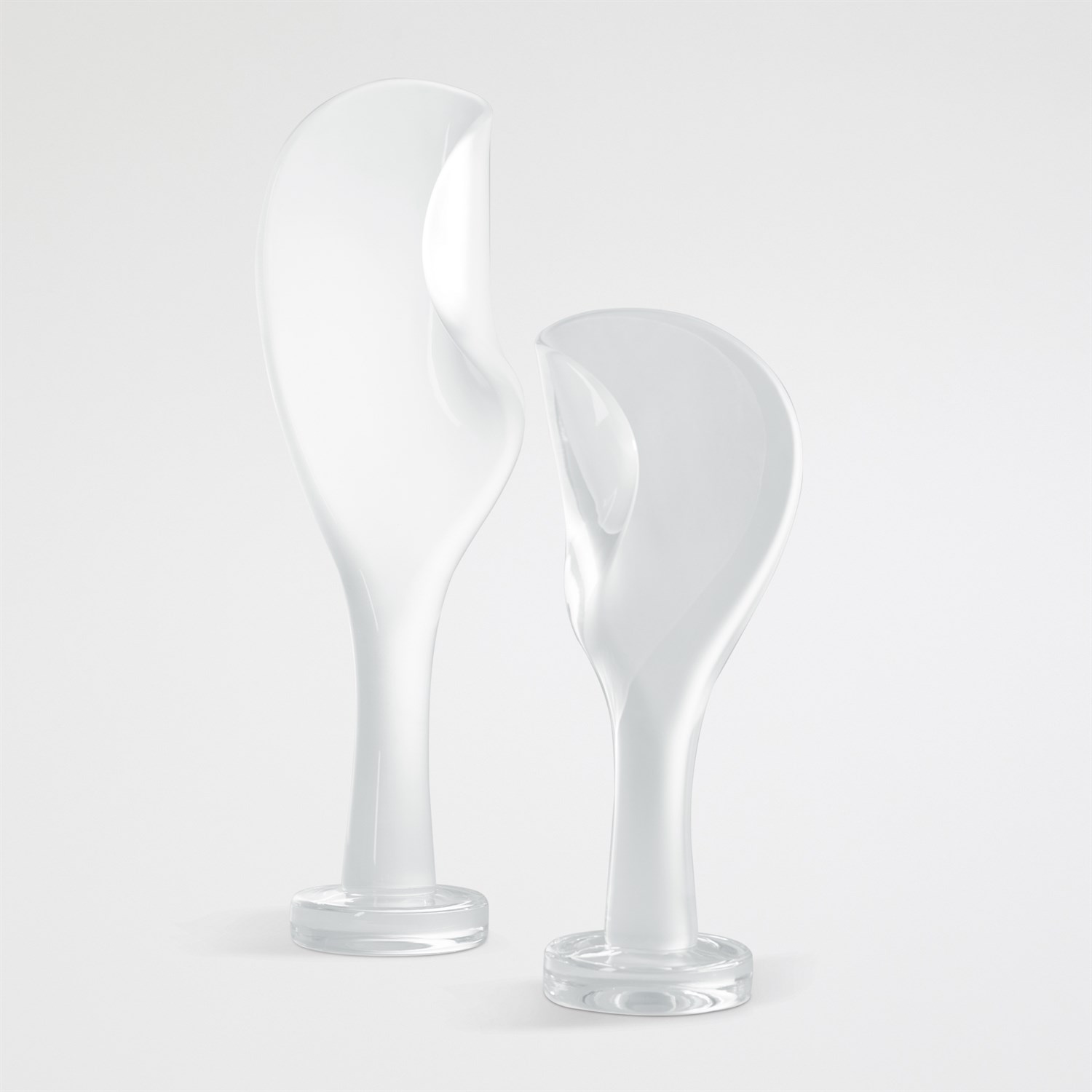 Sensual frosted glass sculpture was created exclusively for Studio A Home by Polish glass artisans. Purchased as a pair, they make a loving couple.