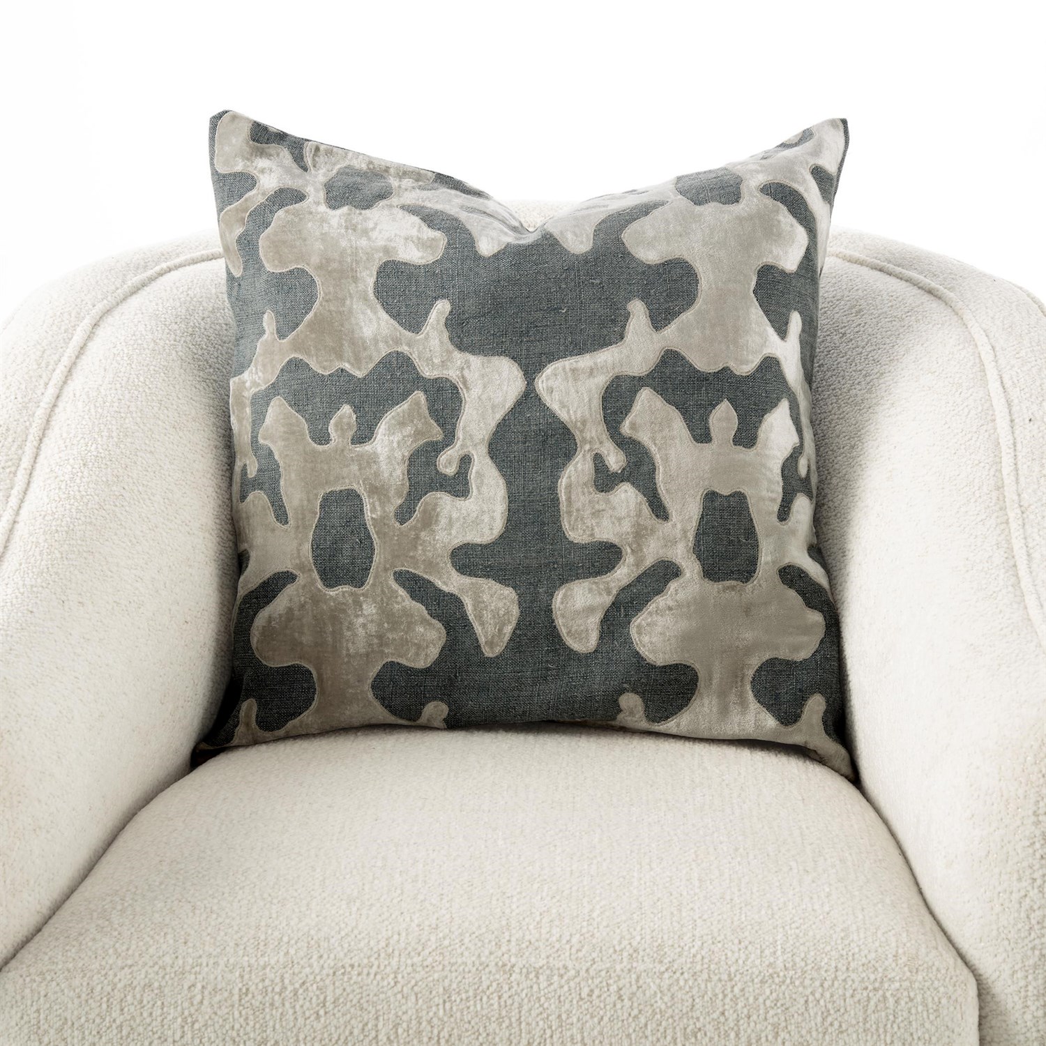 Featuring one of our favorite motifs, our Ink Blot Pillow is a showstopper with its velvet on linen applique and color options. Perfect for pairing with our Icon Pillows for a bold combination. A down insert is included with this design.