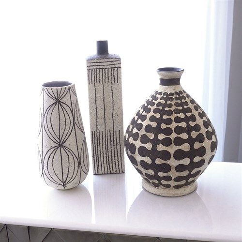 The Interlock Vase is slip cast Italian ceramic with hand-applied decoration.