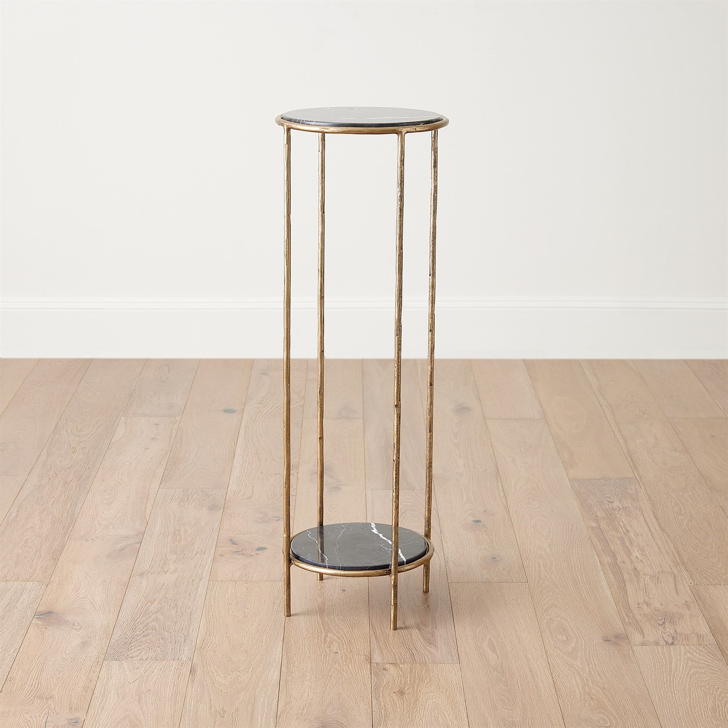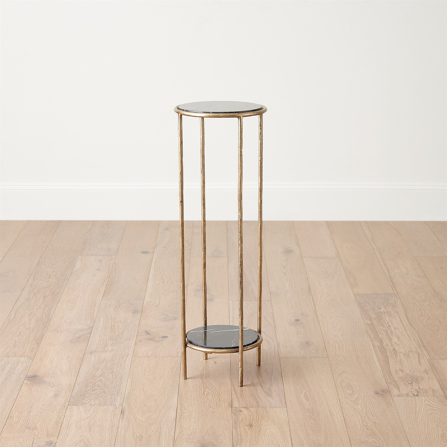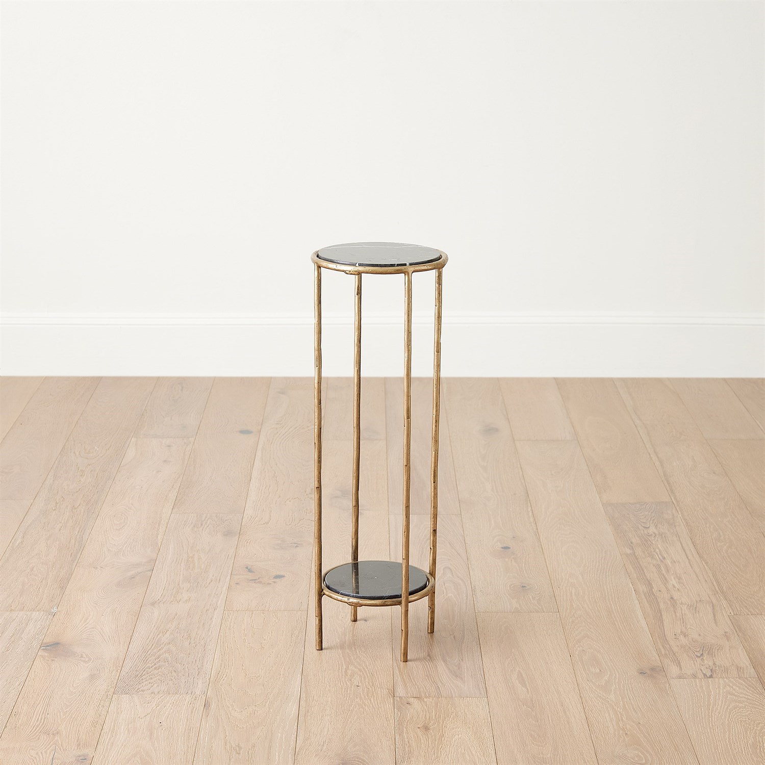 Iron Pedestal-Antique Brass w/Black Marble-Sm
