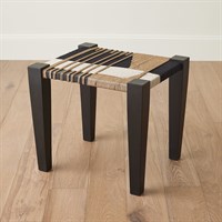 The Jute Stool features a sturdy black mango wood base and a handwoven jute seat th a unique, eye-catching design. Its combination of texture and craftsmanship makes it an ideal choice for stylish, functional seating.