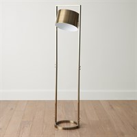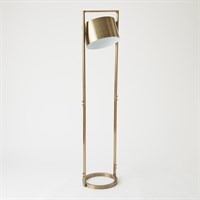Streamlined and refined, the Key Light Metal Floor Lamp is crafted from iron with an antique brass finish. Its pivoting shade provides adjustable lighting, and a white interior enhances the glow. Subtle detailing and clean lines define its sleek, purposeful design.