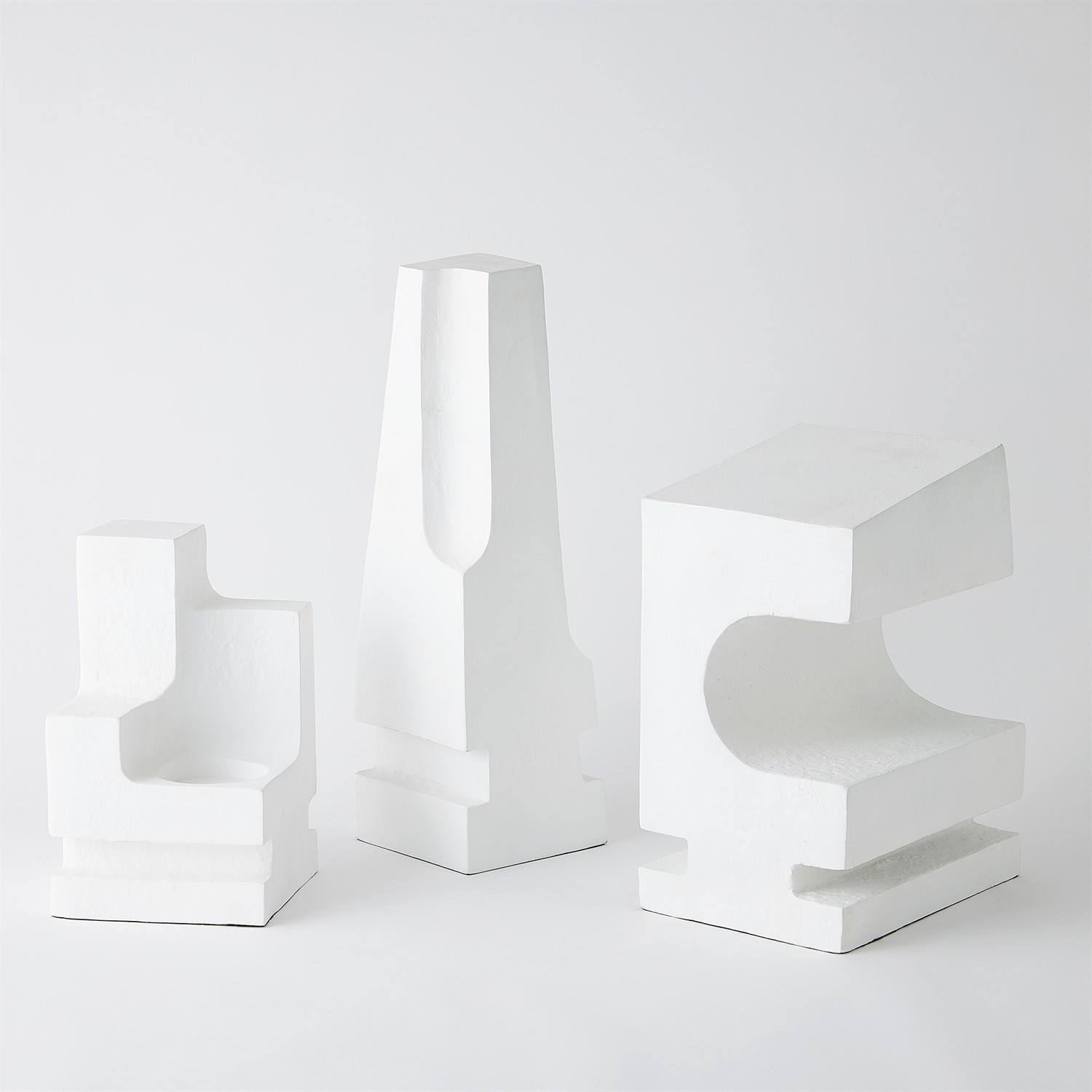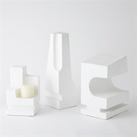The La Structure Sculpture Collection by Lemieux et Cie channels Bauhaus-inspired geometry into bold, architectural forms. Available in both a "plaster white" or "concrete" finish, these striking pieces blend modernist rigor with sculptural depth—perfect for statement-making interiors.