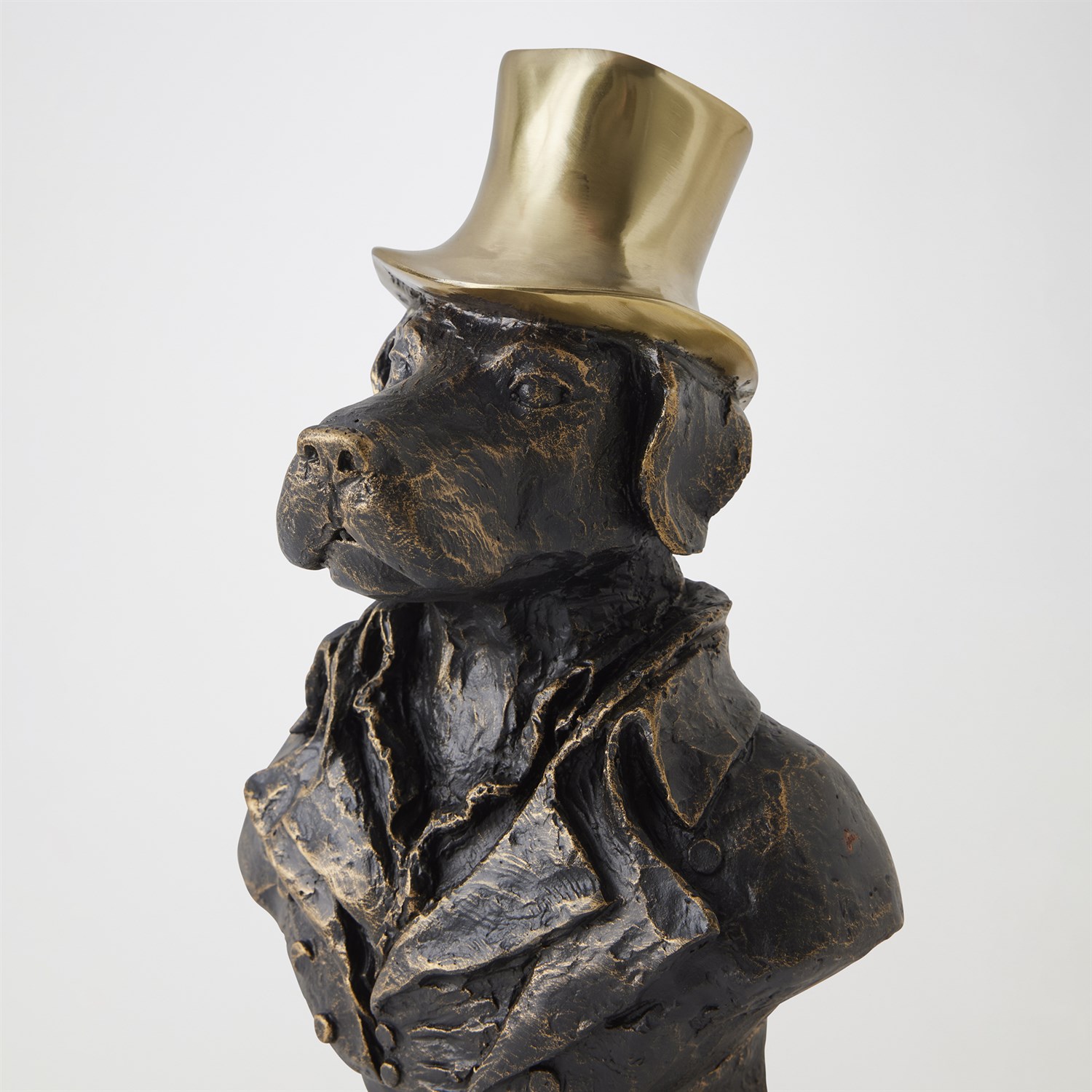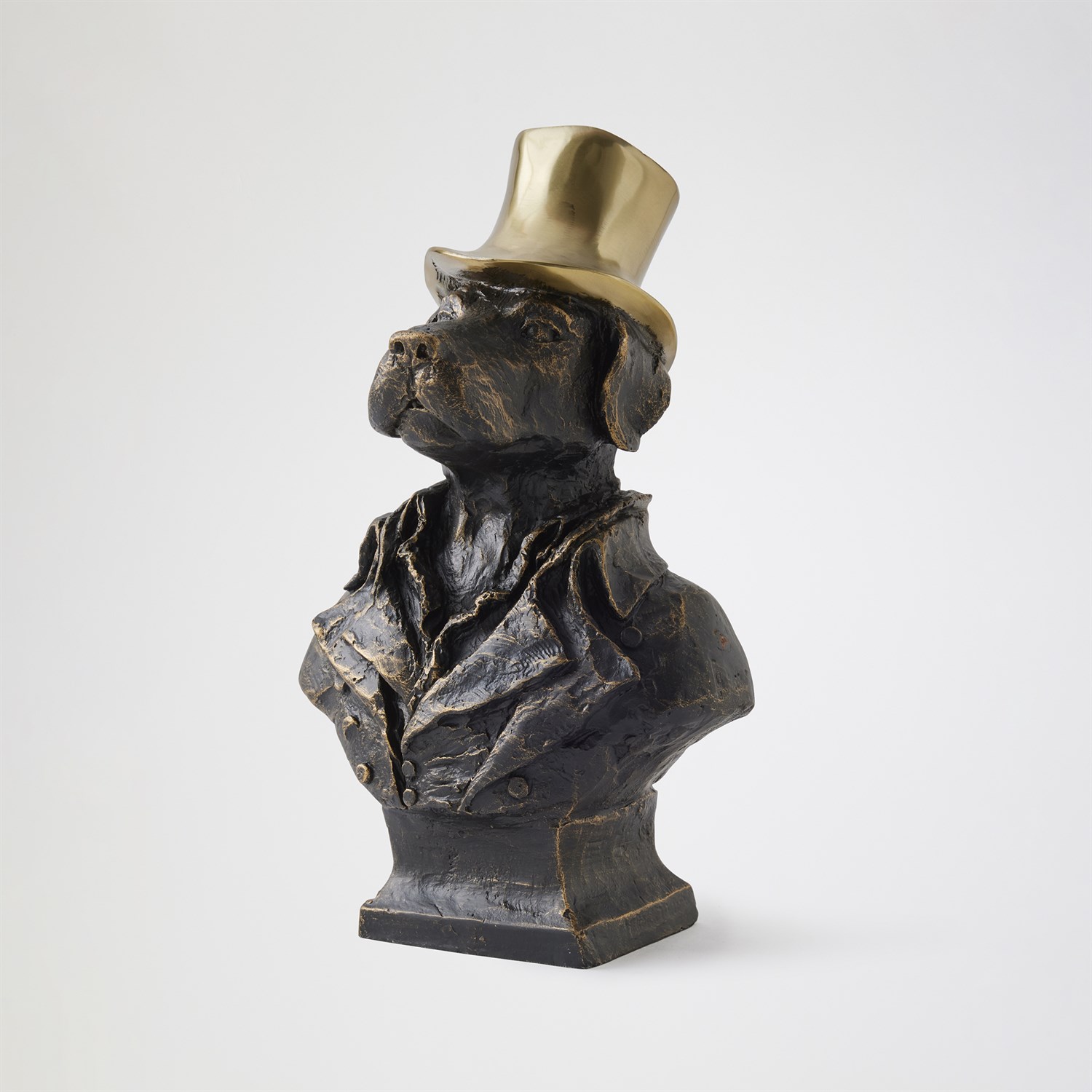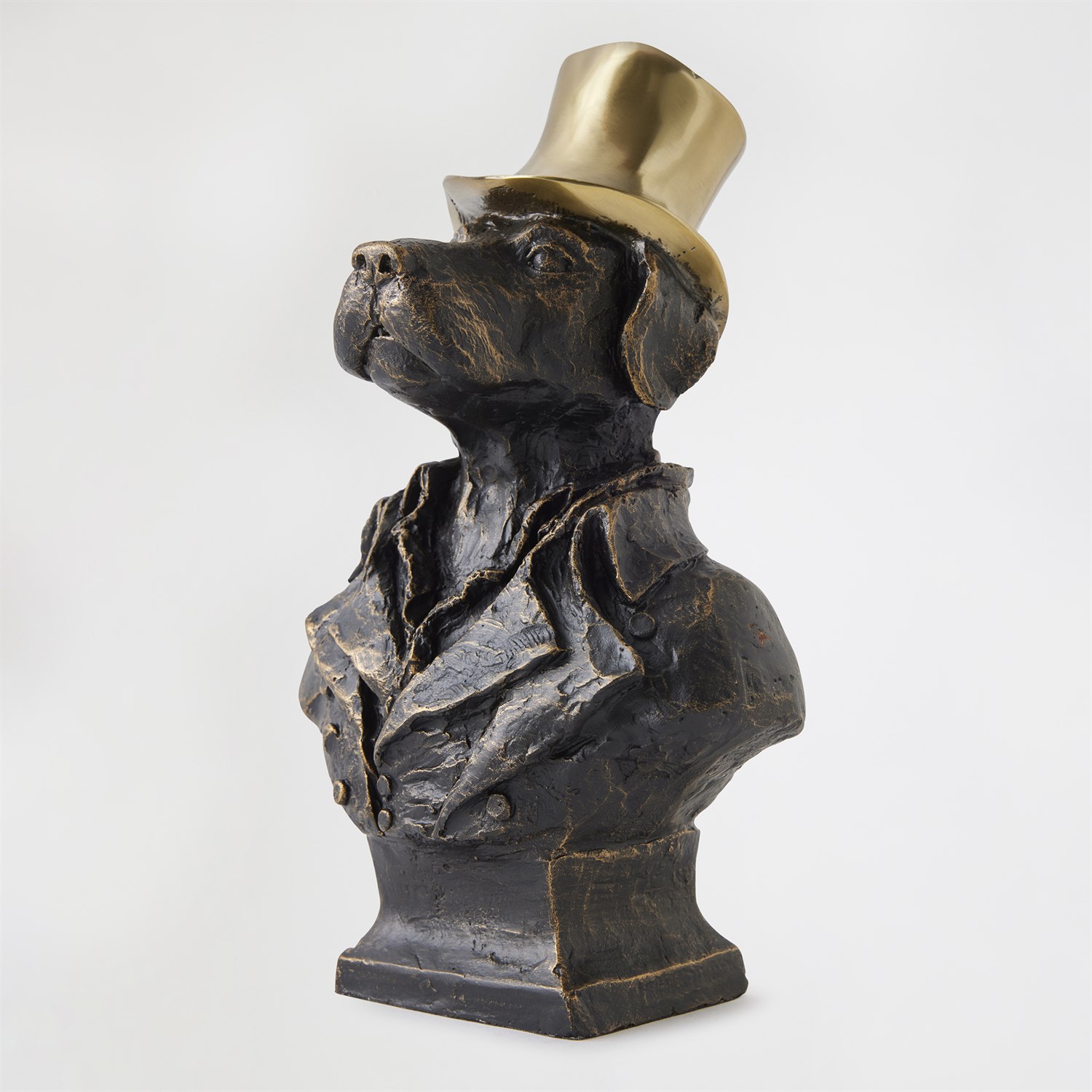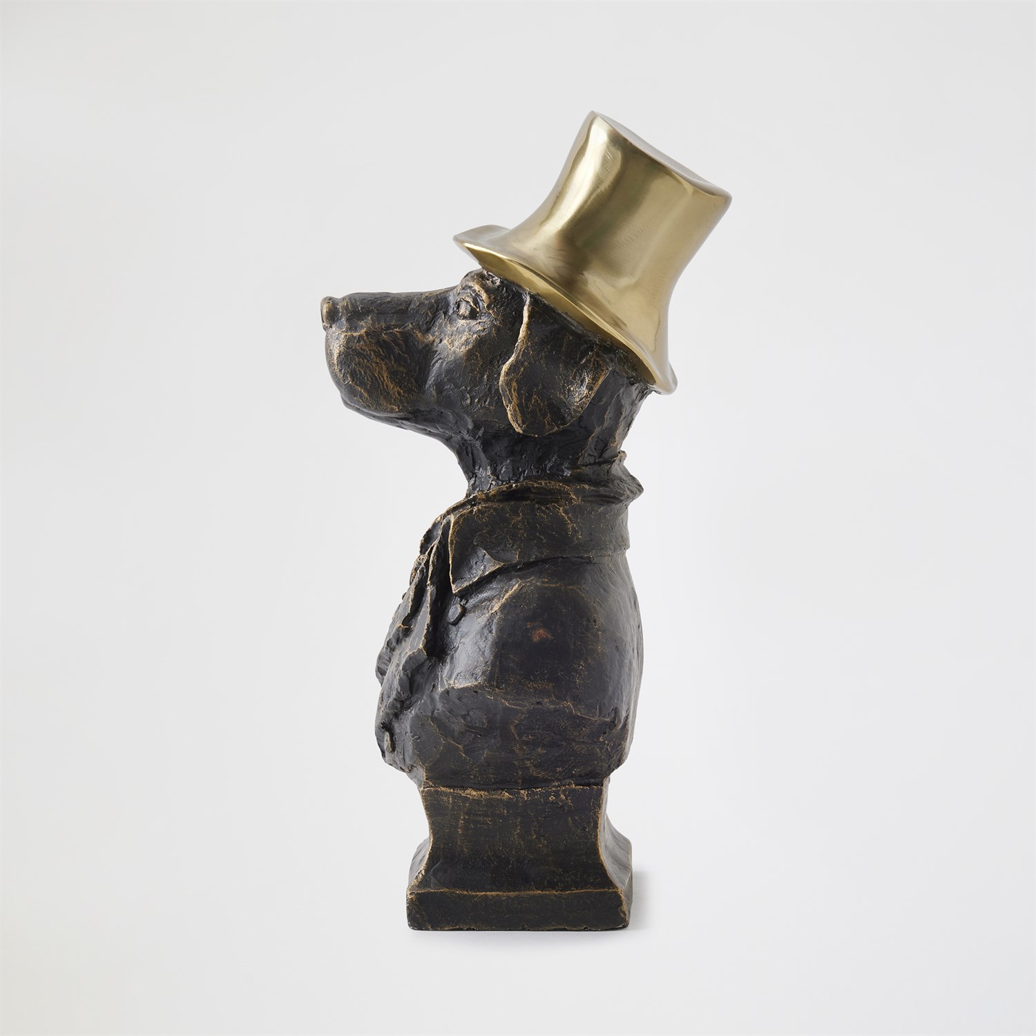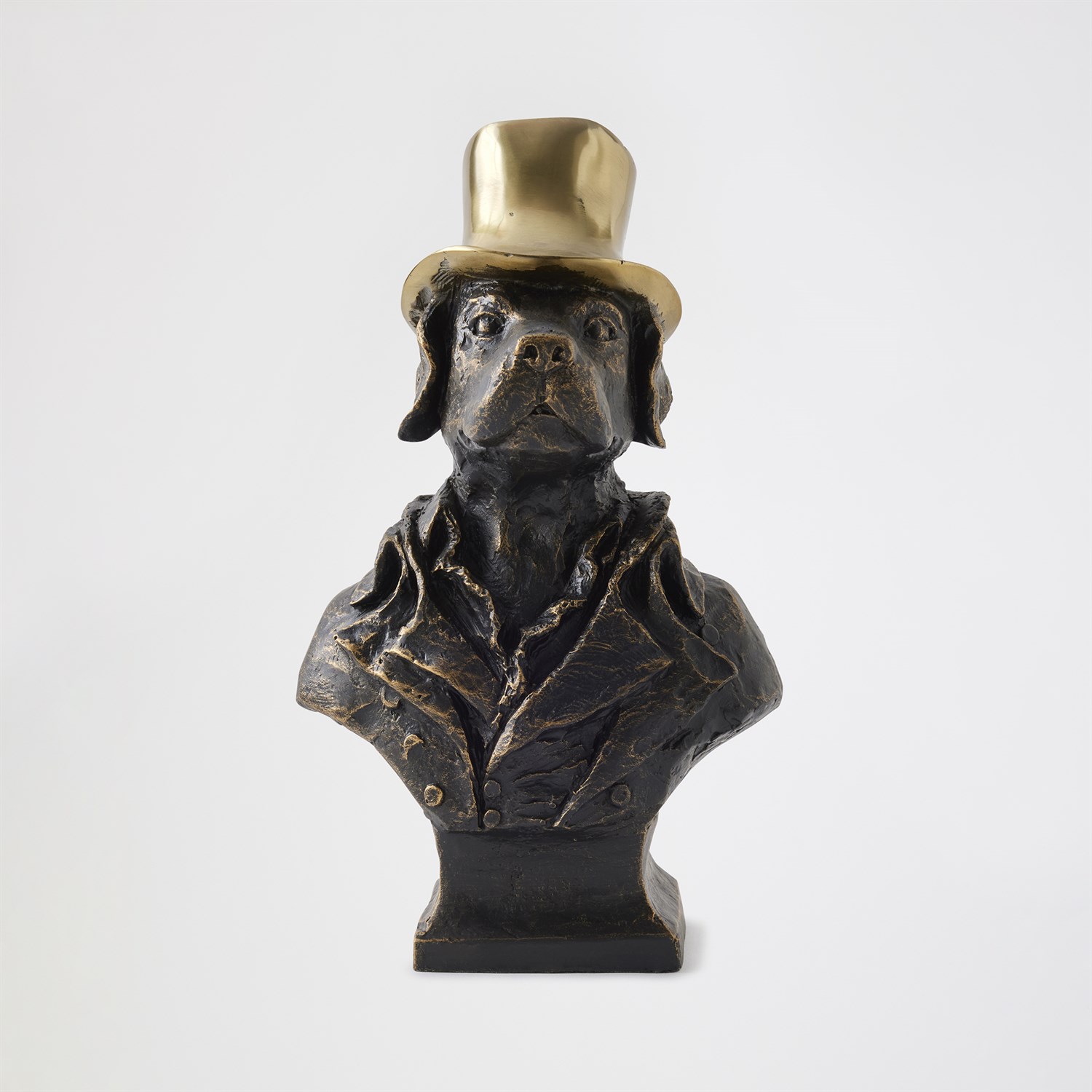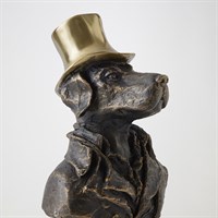 This finely crafted Labrador sculpture combines charm and artistry in exquisite detail. The body is cast in lost-wax iron, while the playful hat is rendered in solid brass with a polished finish, creating a striking contrast of materials. A sophisticated yet whimsical piece, it celebrates craftsmanship with a touch of personality.