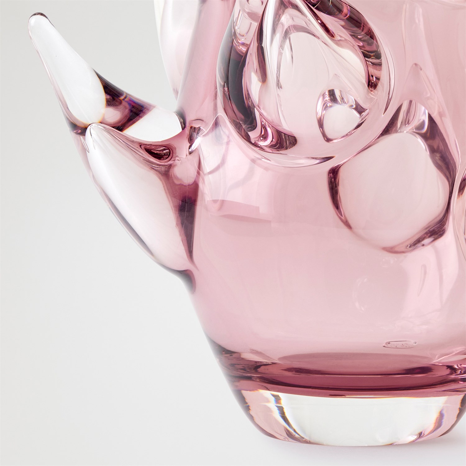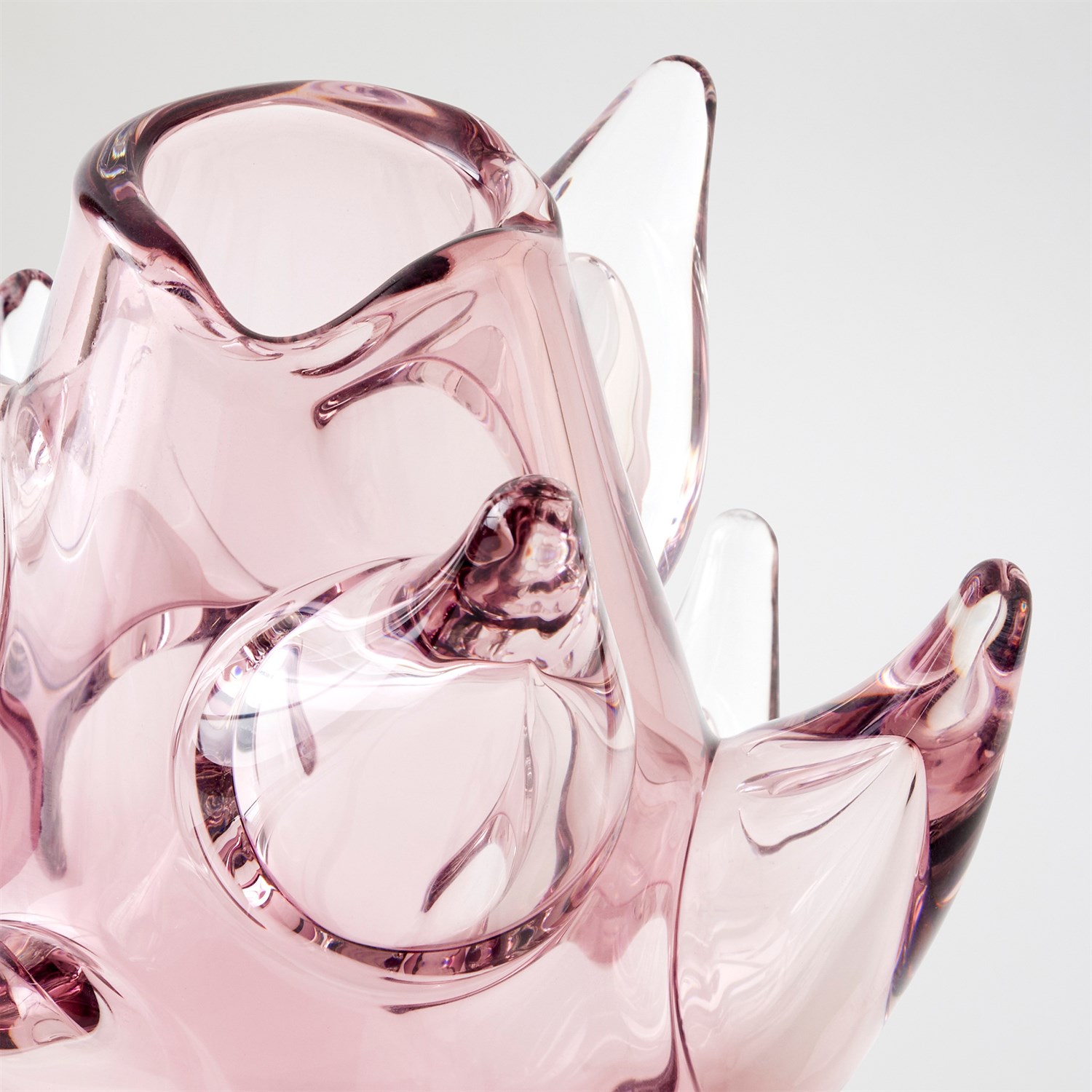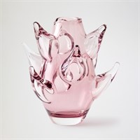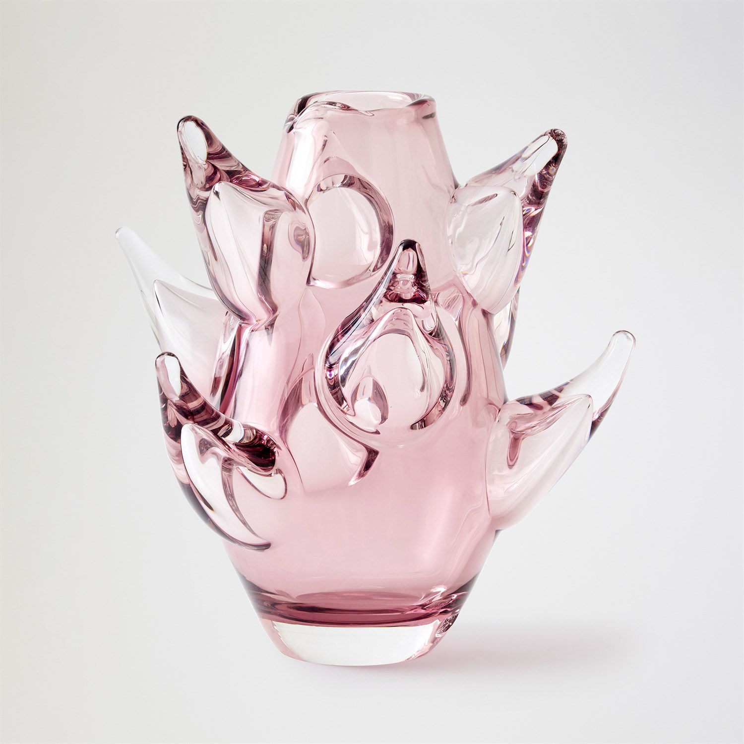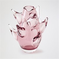 The Odin Vase is a hand-blown and meticulously formed Polish glass masterpiece, showcasing a dynamic sculptural form. Hand-pulled spikes emerge from the vase, creating a bold, expressive silhouette. Each piece is entirely unique, with no two alike, and is available in sophisticated amber or amethyst finishes, making it a captivating centerpiece for any interior.