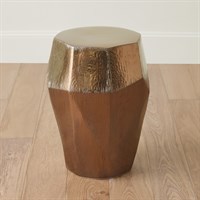 The Origami Garden Stool presents a faceted ceramic form with a textured reactive bronze glaze that reflects light from every angle. Suitable for interiors and covered outdoor spaces, this versatile piece functions as extra seating, a sculptural side table, or a compelling accent.