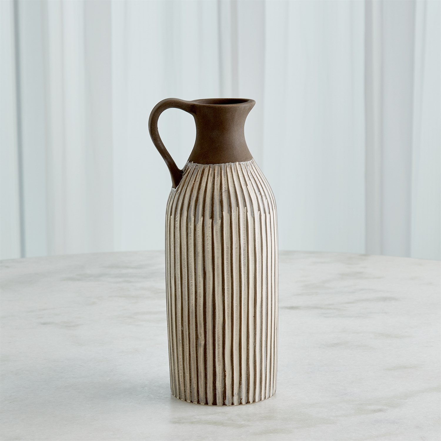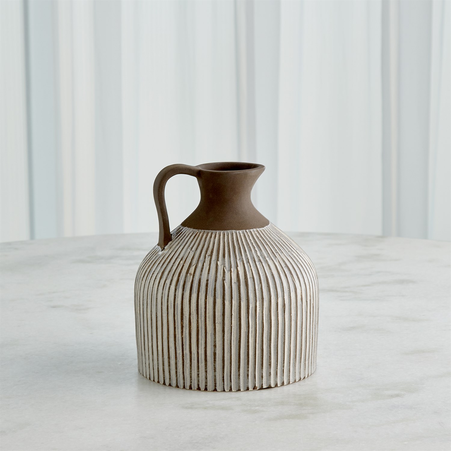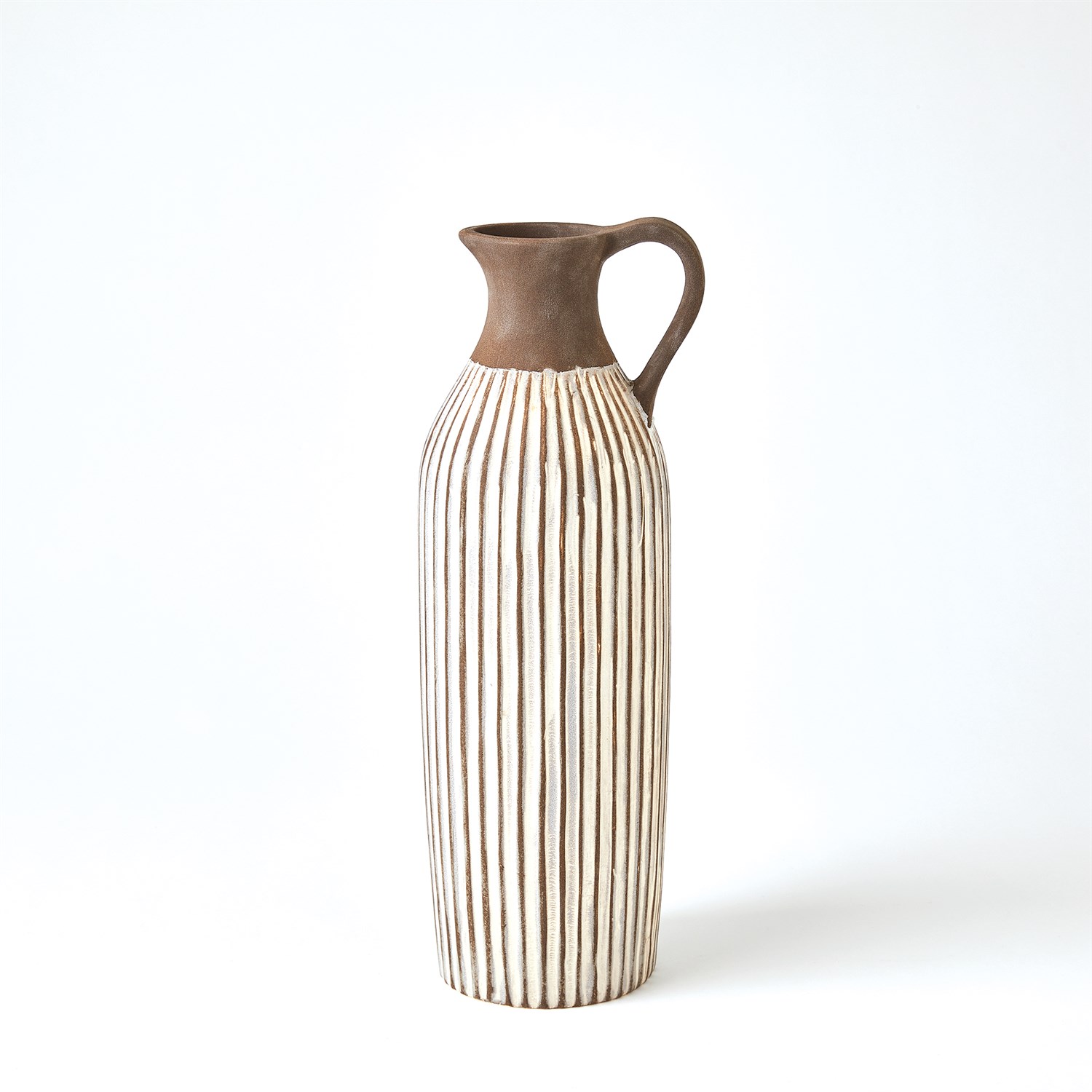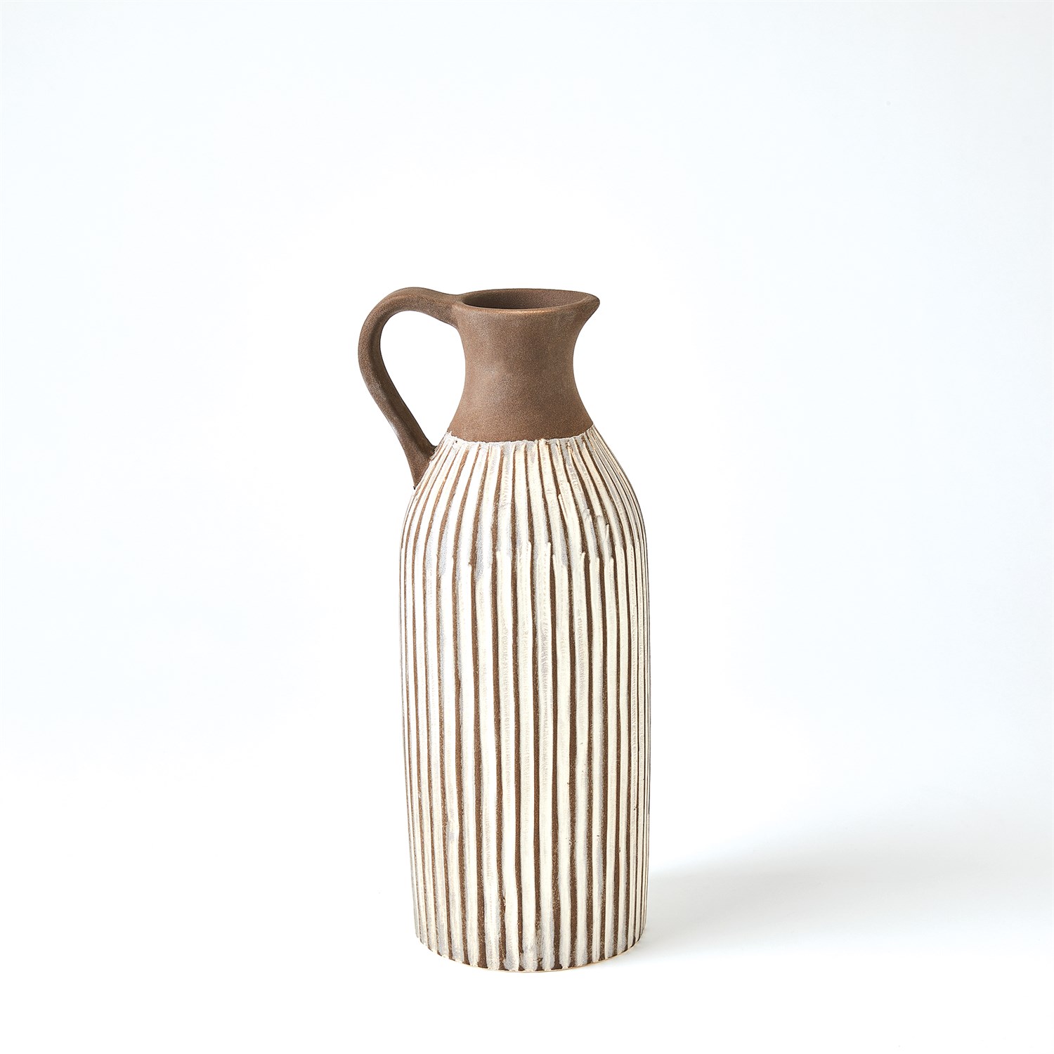 Crafted by Portuguese artisans, the Palisades Pitchers are slip molded Portuguese ceramics with hand painted reactive glaze striped details.