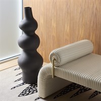 The Overscale Vases in Black combine scale and organic form for decorative drama. Whether alone or in a grouping, these vases are the perfect graphic elements to compliment any decor. Listed from left to right as shown in the image: Deoune Vase, Pasteur Vase, Fenouil Vase, Panisse Vase, and Muguet Vase.