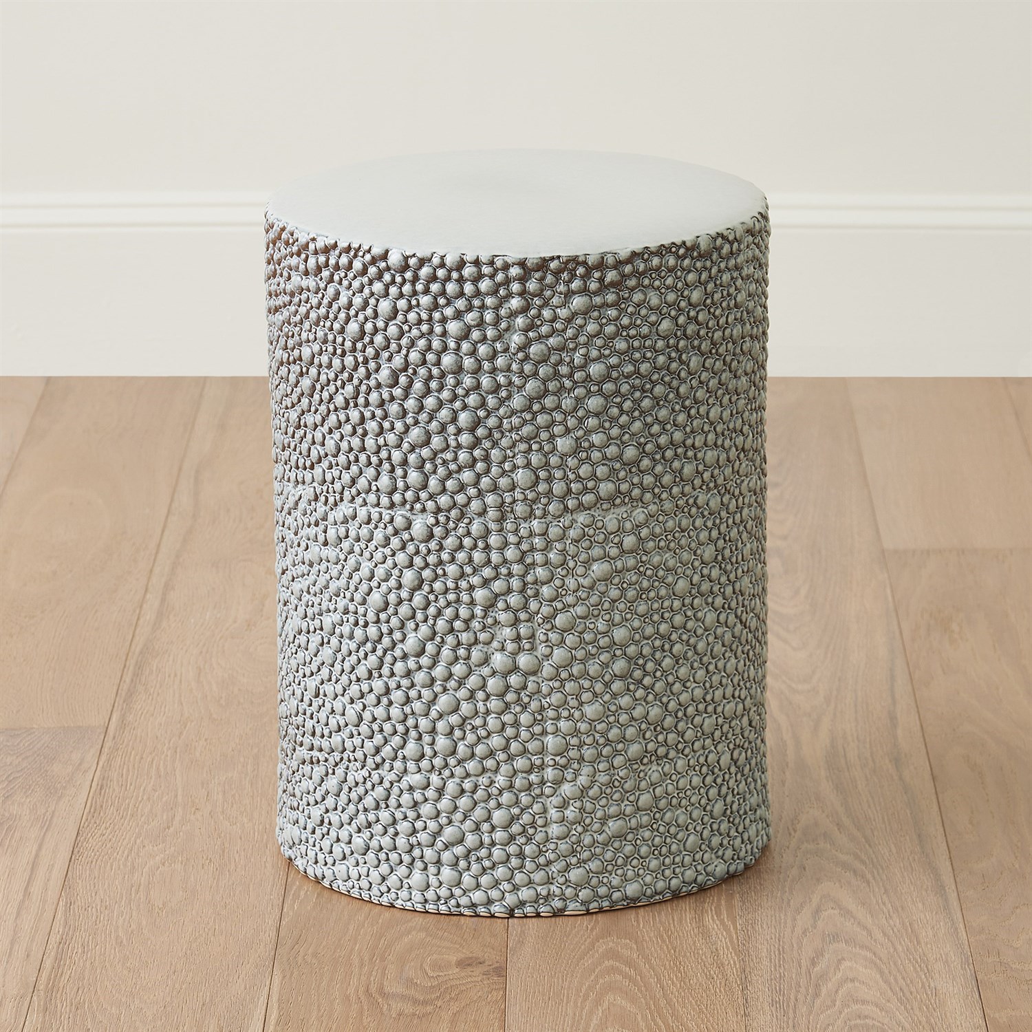 The Pebble Stool showcases a sculptural ceramic design featuring a subtle, pebbled texture and a layered blue and white reactive glaze. Natural variations in the finish enhance the artisanal character of the glaze, ensuring that each piece is unique. Suitable for indoor or covered outdoor use, it serves beautifully as extra seating or an eye-catching side table.