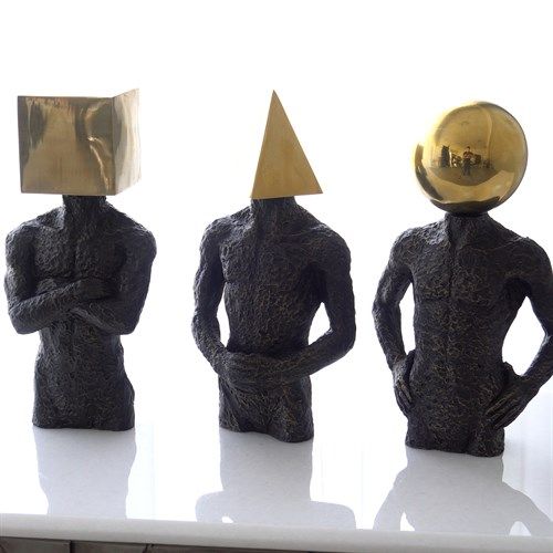 The Pyramid Hero is a whimsical sculpture created from cast iron with a brass geometric head. The exaggerated texture of the body with the juxtaposition to the smoothness of the head makes it the perfect conversation piece!