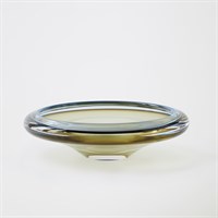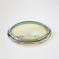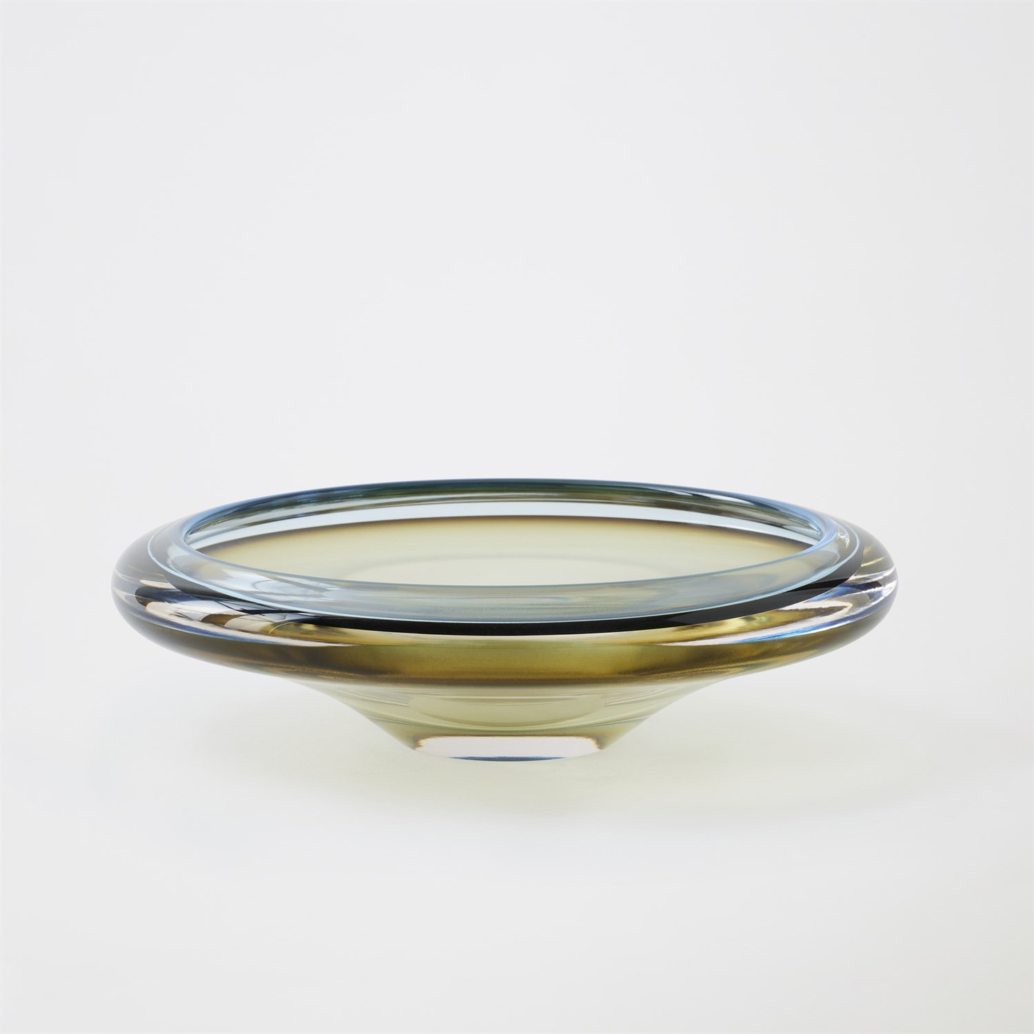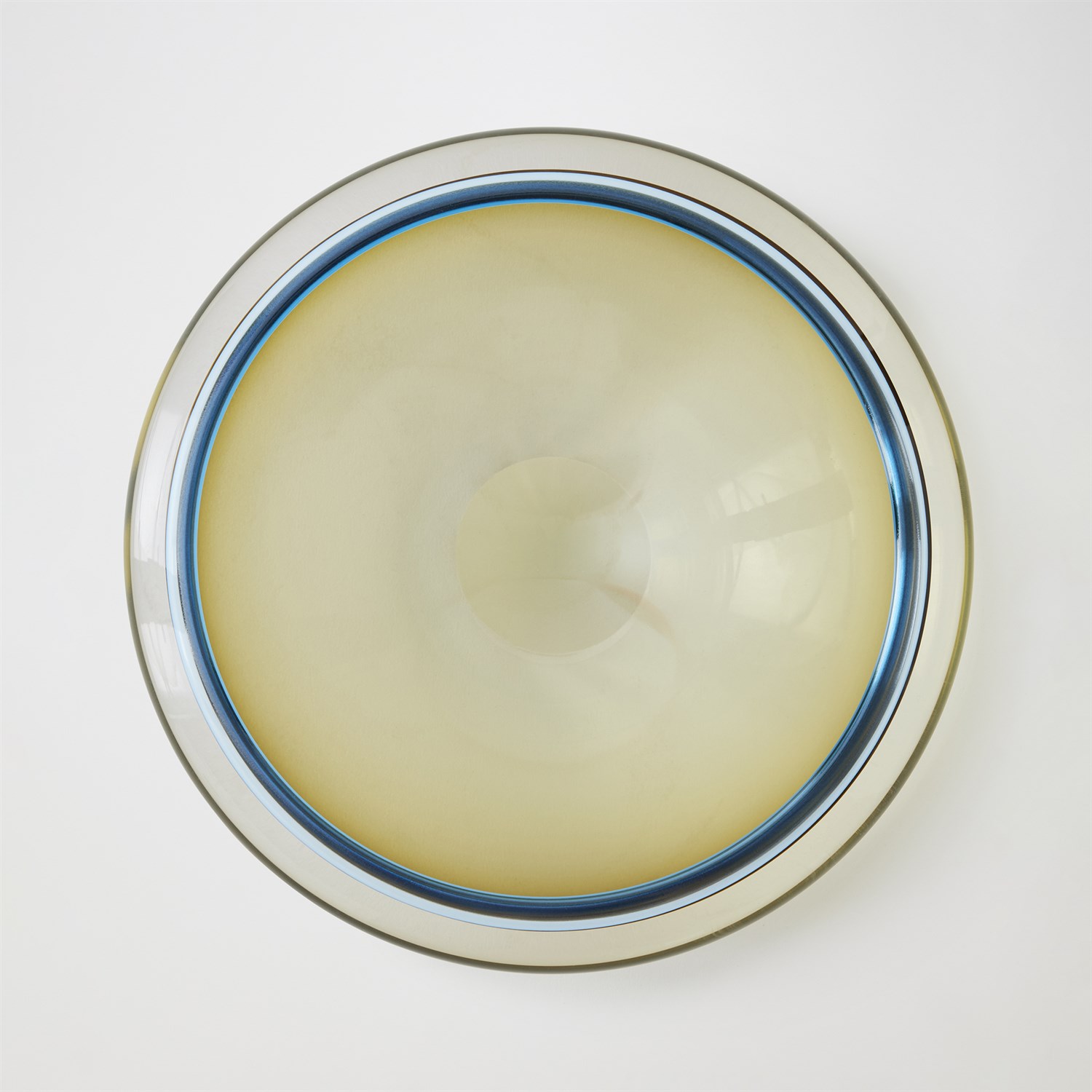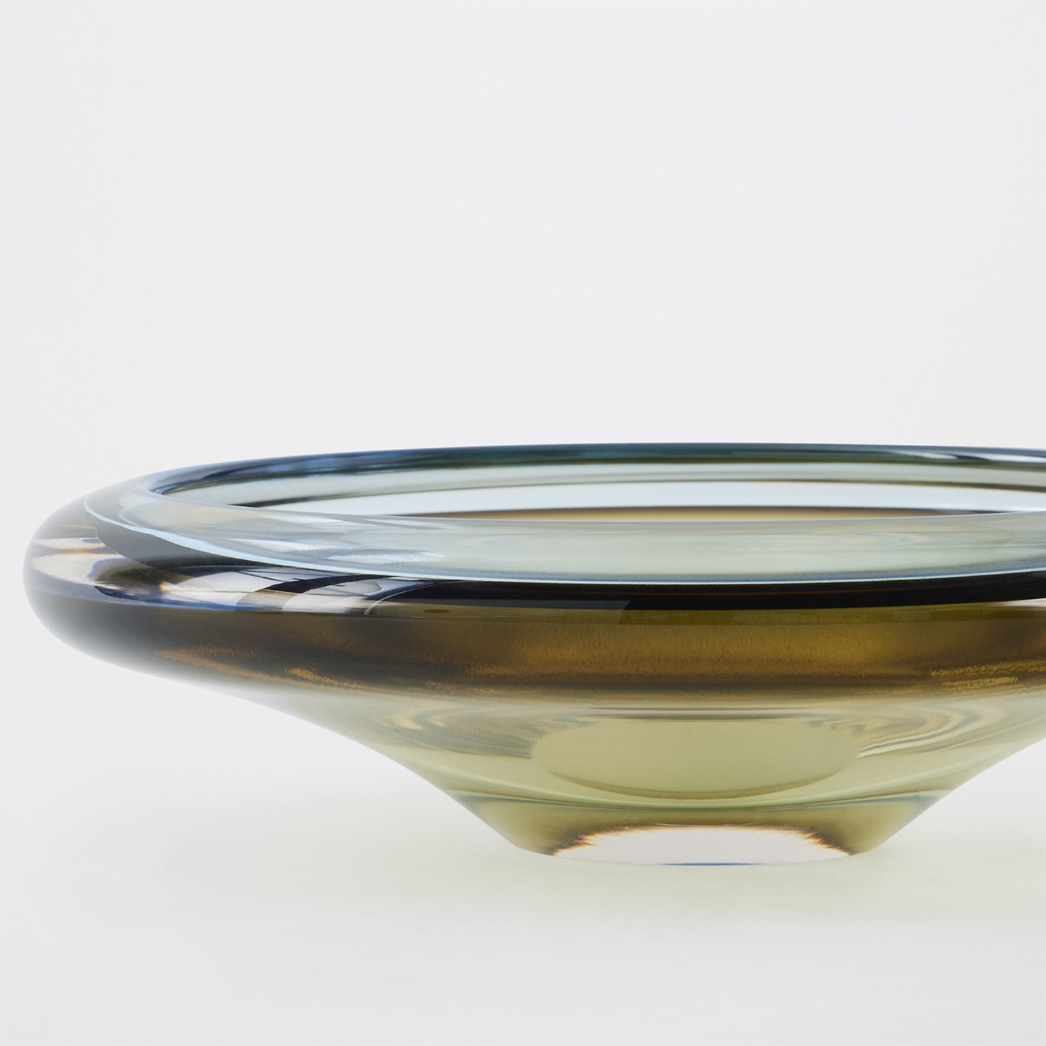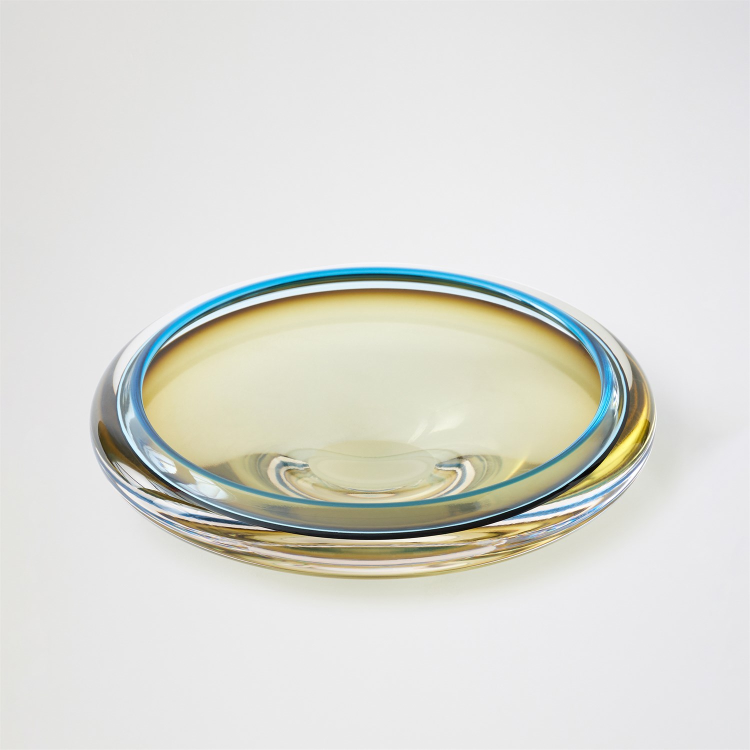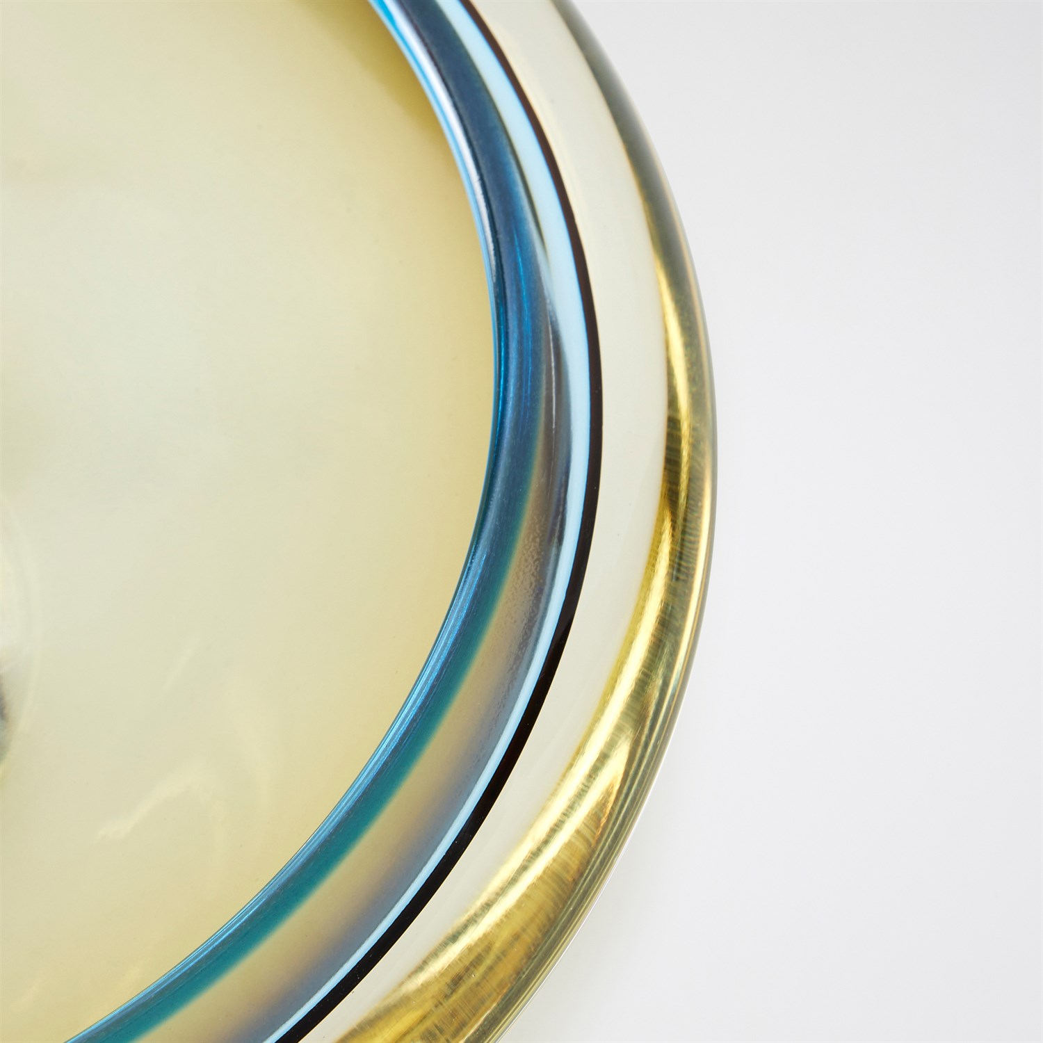 The Rolled Lip Bowl, meticulously mouth-blown in Poland, showcases a captivating blend of topaz and blue hues. Its elegantly rolled lip and flowing curves create a dynamic interplay of light and color, celebrating the artistry and refined craftsmanship of Polish glassmaking. A stunning sculptural piece for any interior.
