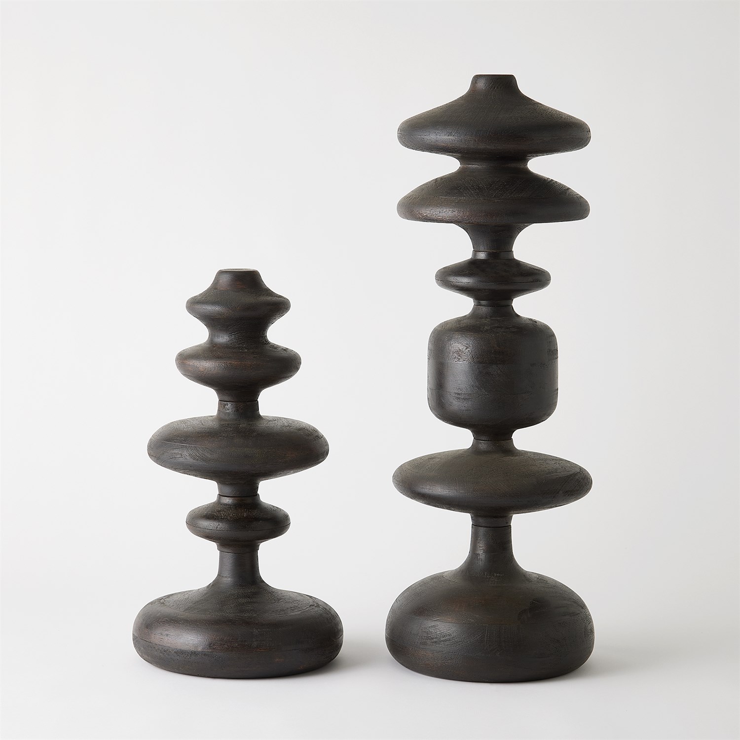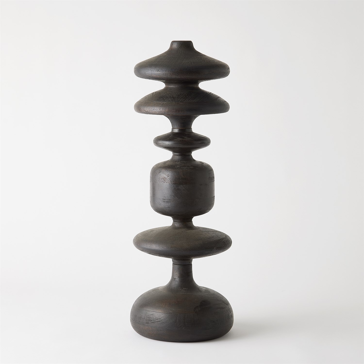 The Romain Totems by Lemieux et Cie are striking sculptural forms, hand-turned from solid wood with undulating silhouettes. Generously sized, and finished in a deep espresso stain, they merge rustic warmth with modern sophistication—making a bold, artful statement in any space.