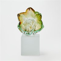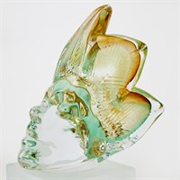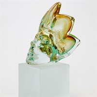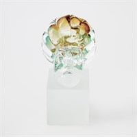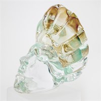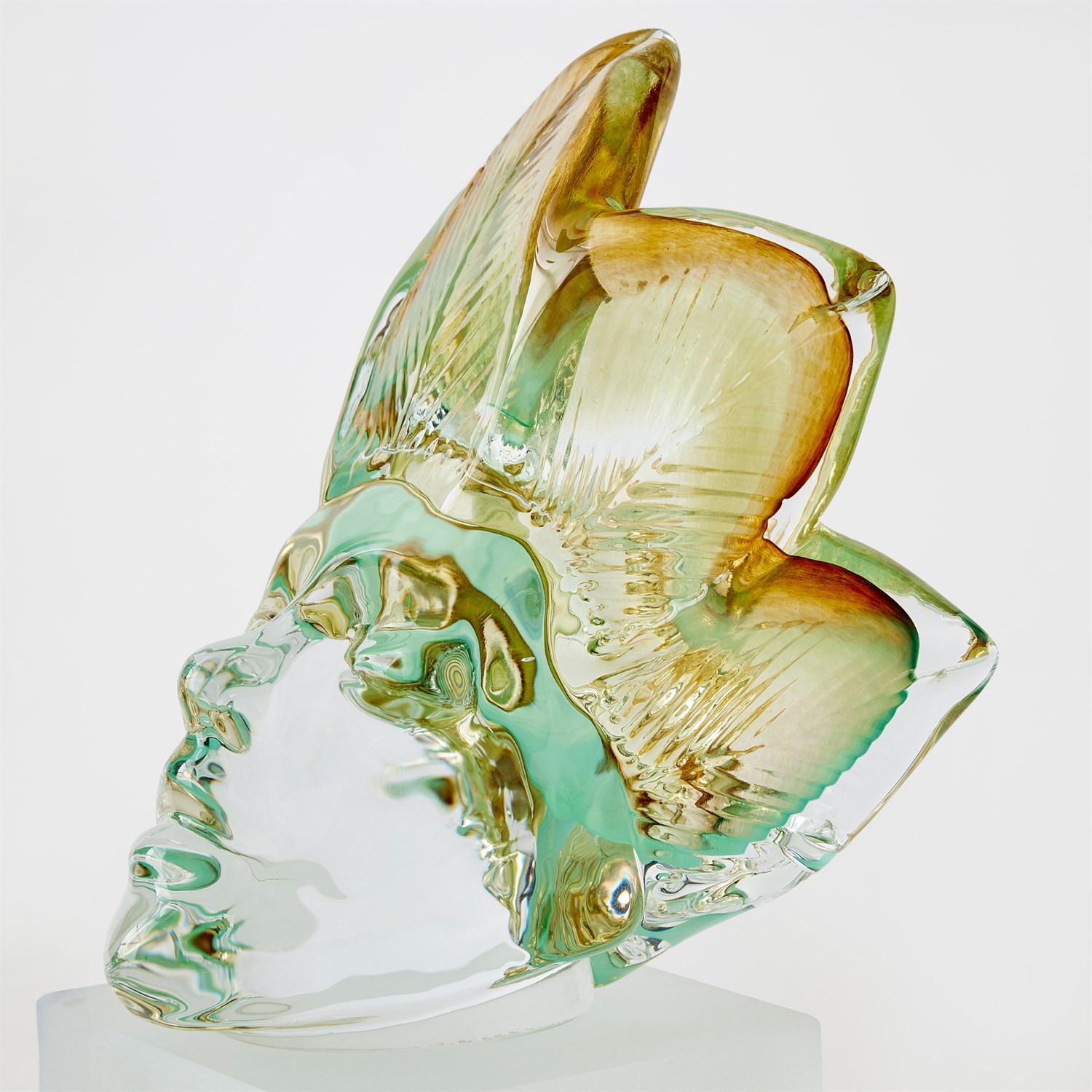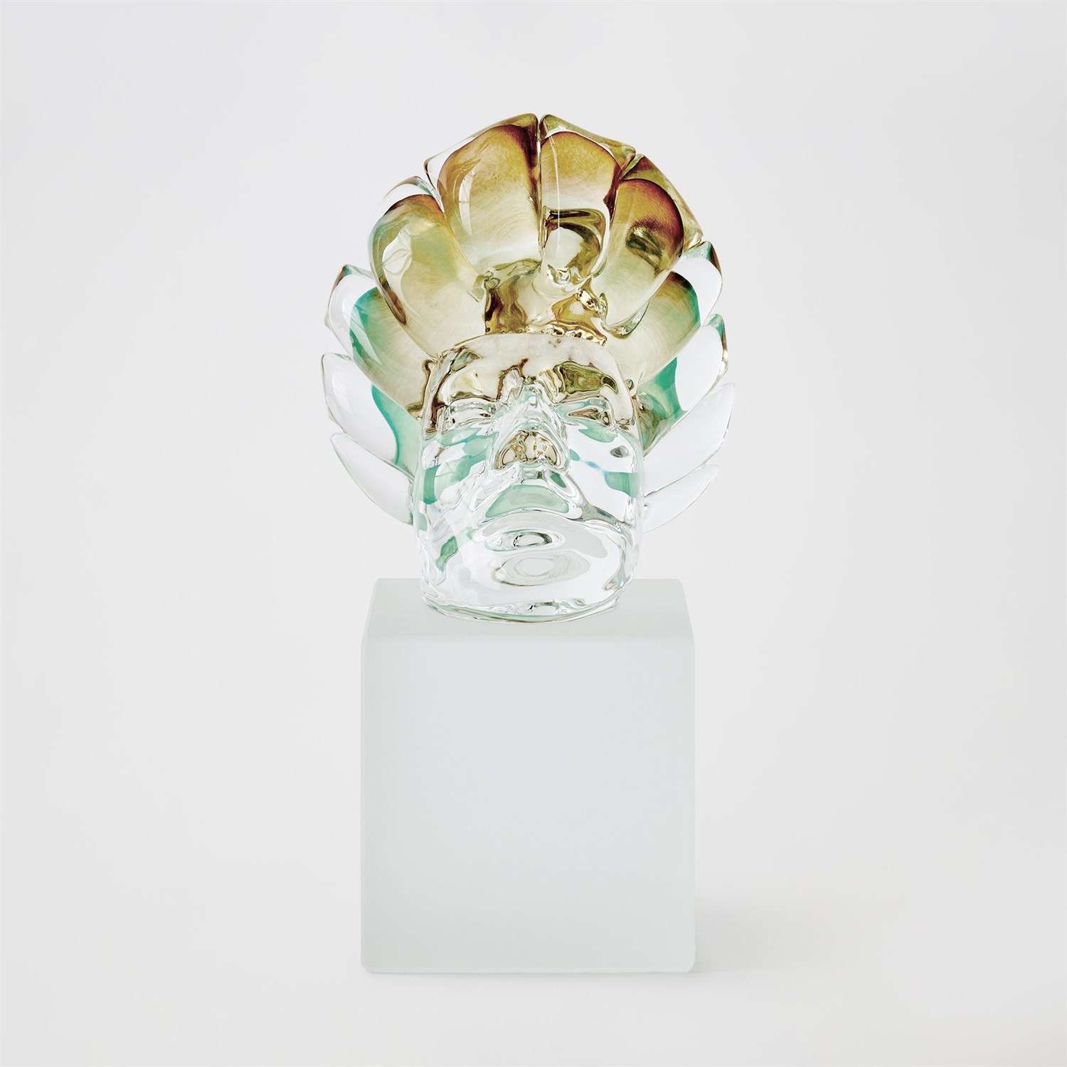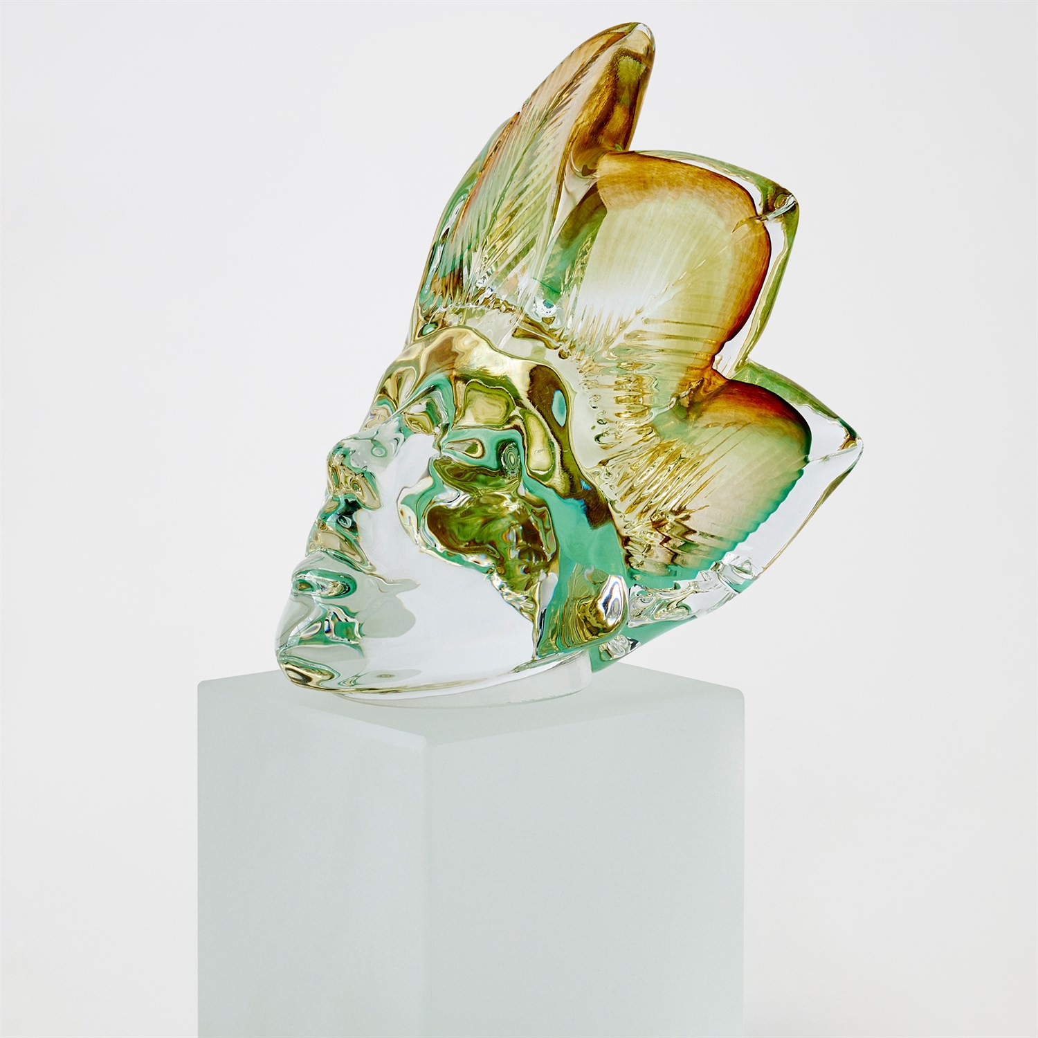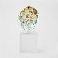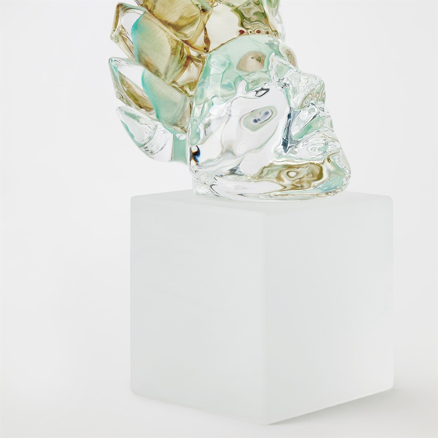 Polish artisans expertly hand sculpt this fantastic Royal Portrait featuring a leaf or scallop crown in pistacio and amber resting gracefully upon a clear glass bust positioned on a frosted glass block. The Royal Portrait exudes timeless sophisitcation with its harmoneous color, texture, and form that elevates any collection