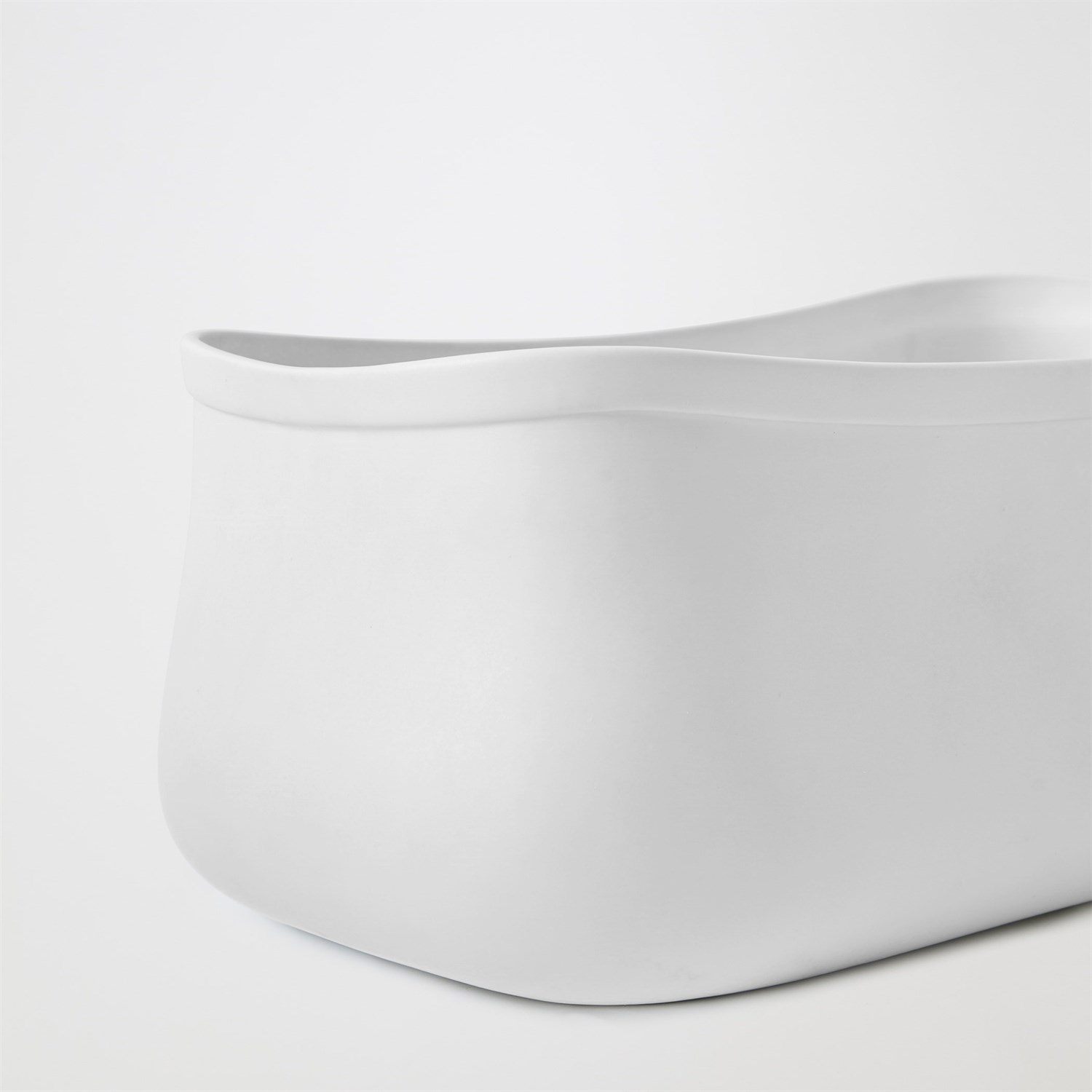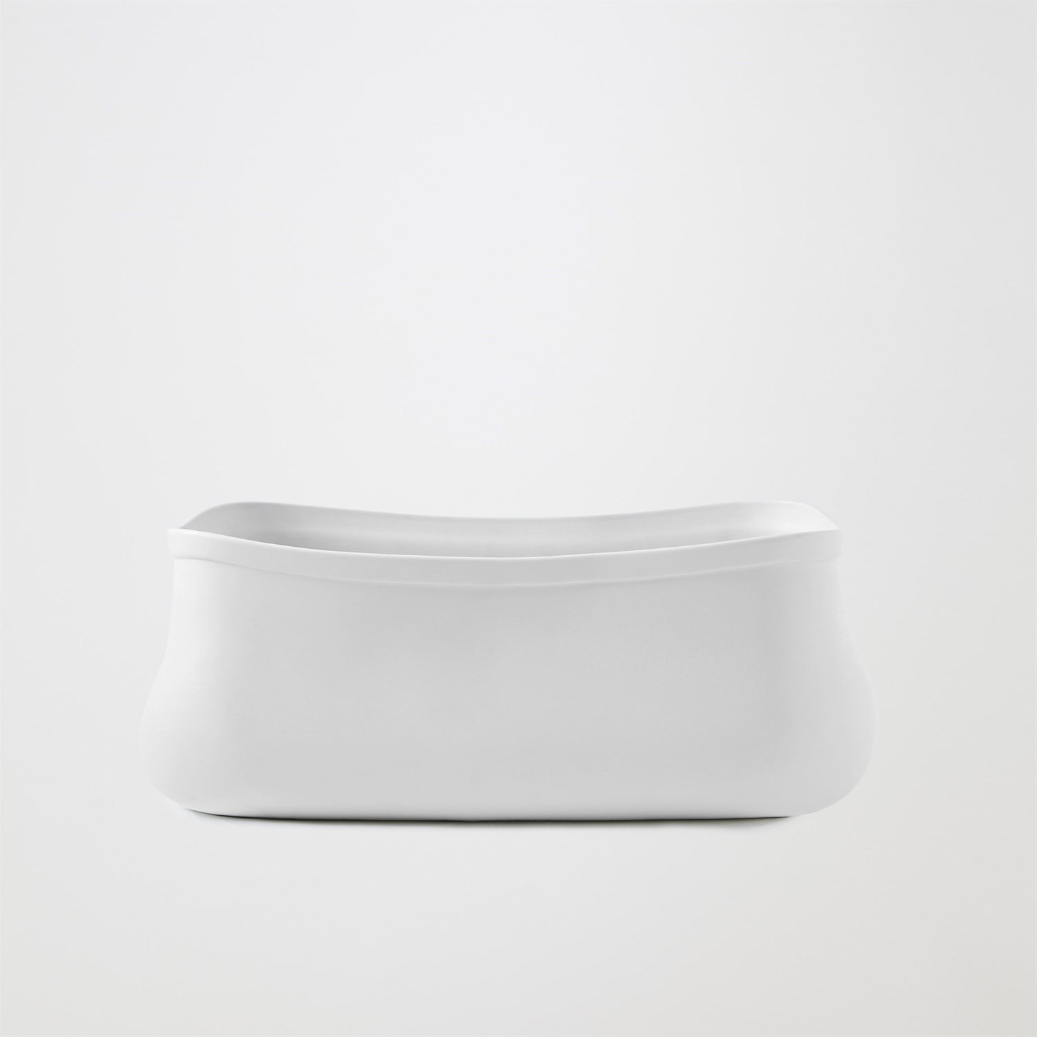 Handmade in Portugal in pure white porcelain, the Sac collection honors beauty found in the everyday. Inspired by burlap sacks, once used to carry grains through open-air markets, each form translates the softness of fabric into the permanence of porcelain. Delicate folds and gathered contours convey motion transfixed—a nod to daily life's tactile rhythms. Watertight and designed for both sculptural presence and practical use, these vessels celebrate the transformation of the humble into the enduring. Beauty begins where we notice it - in the weight of grain, the drape of cloth, the rhythm of hands at work.