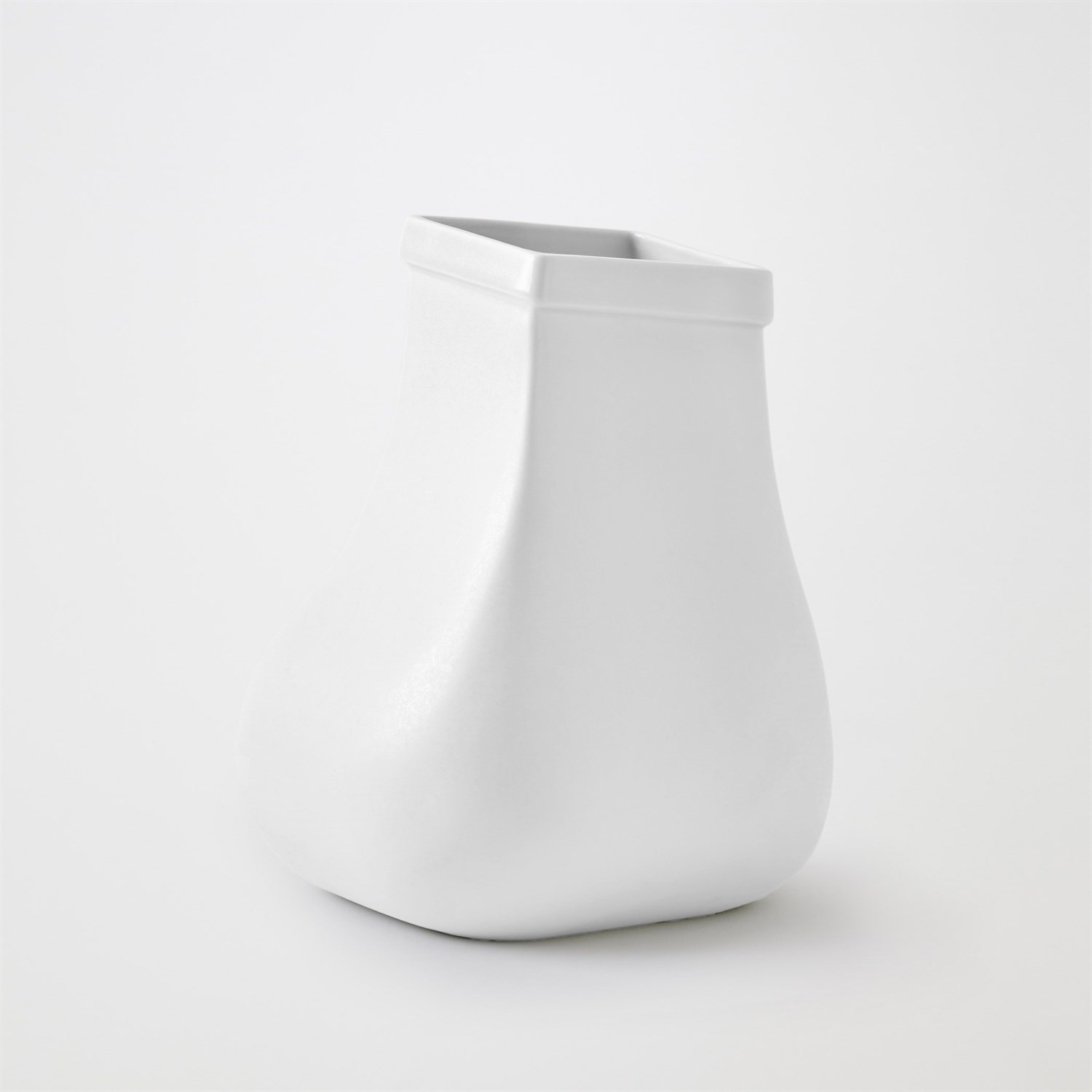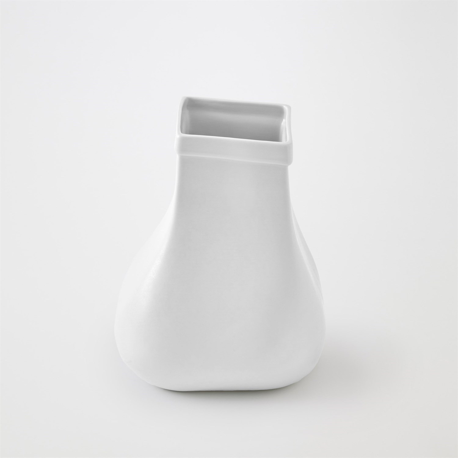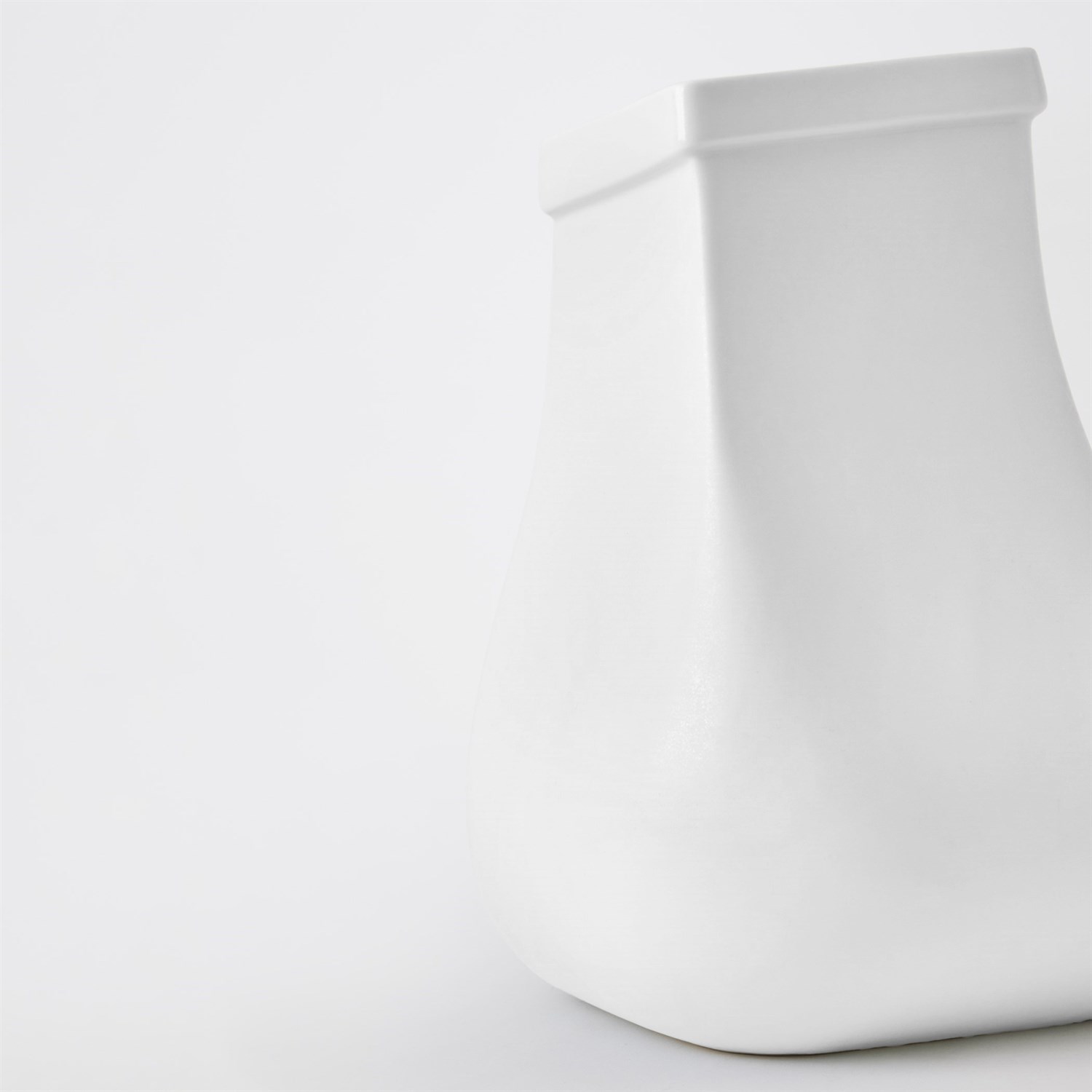 Handmade in Portugal in pure white porcelain, the Sac collection honors beauty found in the everyday. Inspired by burlap sacks, once used to carry grains through open-air markets, each form translates the softness of fabric into the permanence of porcelain. Delicate folds and gathered contours convey motion transfixed—a nod to daily life's tactile rhythms. Watertight and designed for both sculptural presence and practical use, these vessels celebrate the transformation of the humble into the enduring. Beauty begins where we notice it - in the weight of grain, the drape of cloth, the rhythm of hands at work.