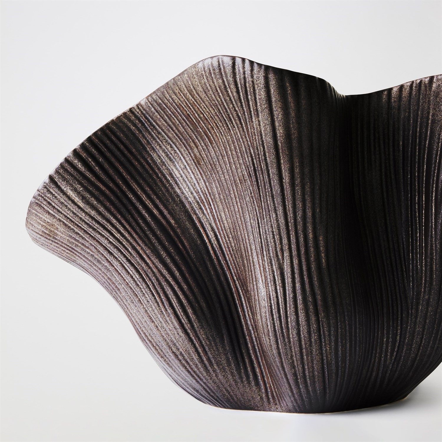 Voluminous curves and organic textures define the overscaled drama of Scallop. Available in Matte White and Reactive Bronze, this bowl draws inspiration from mysteries deep beneath the sea.