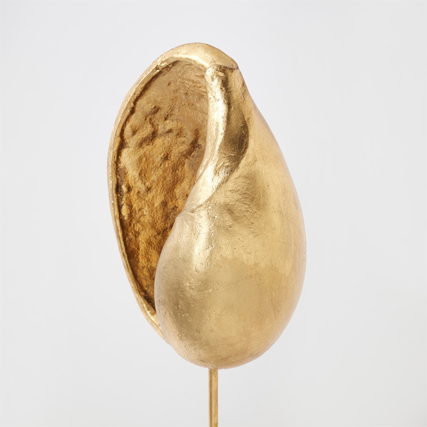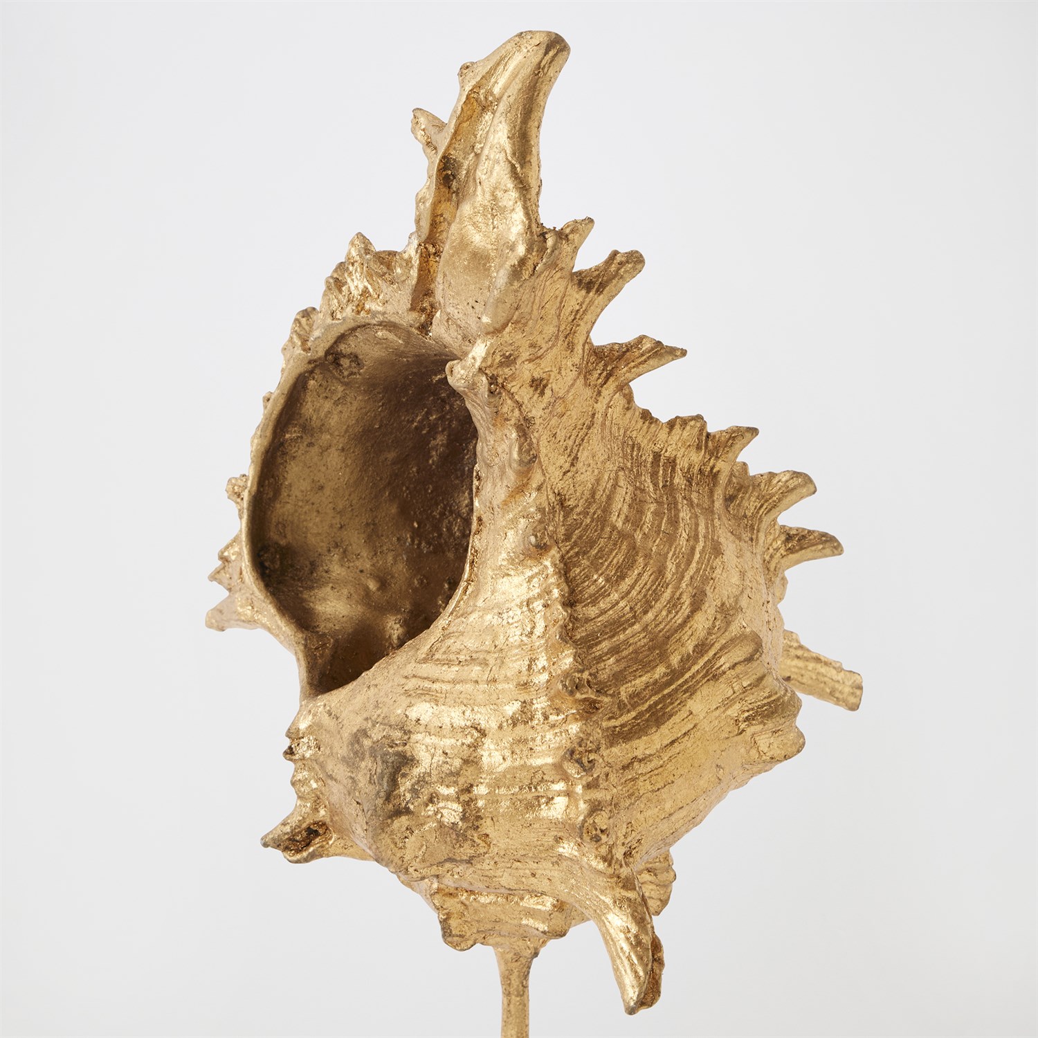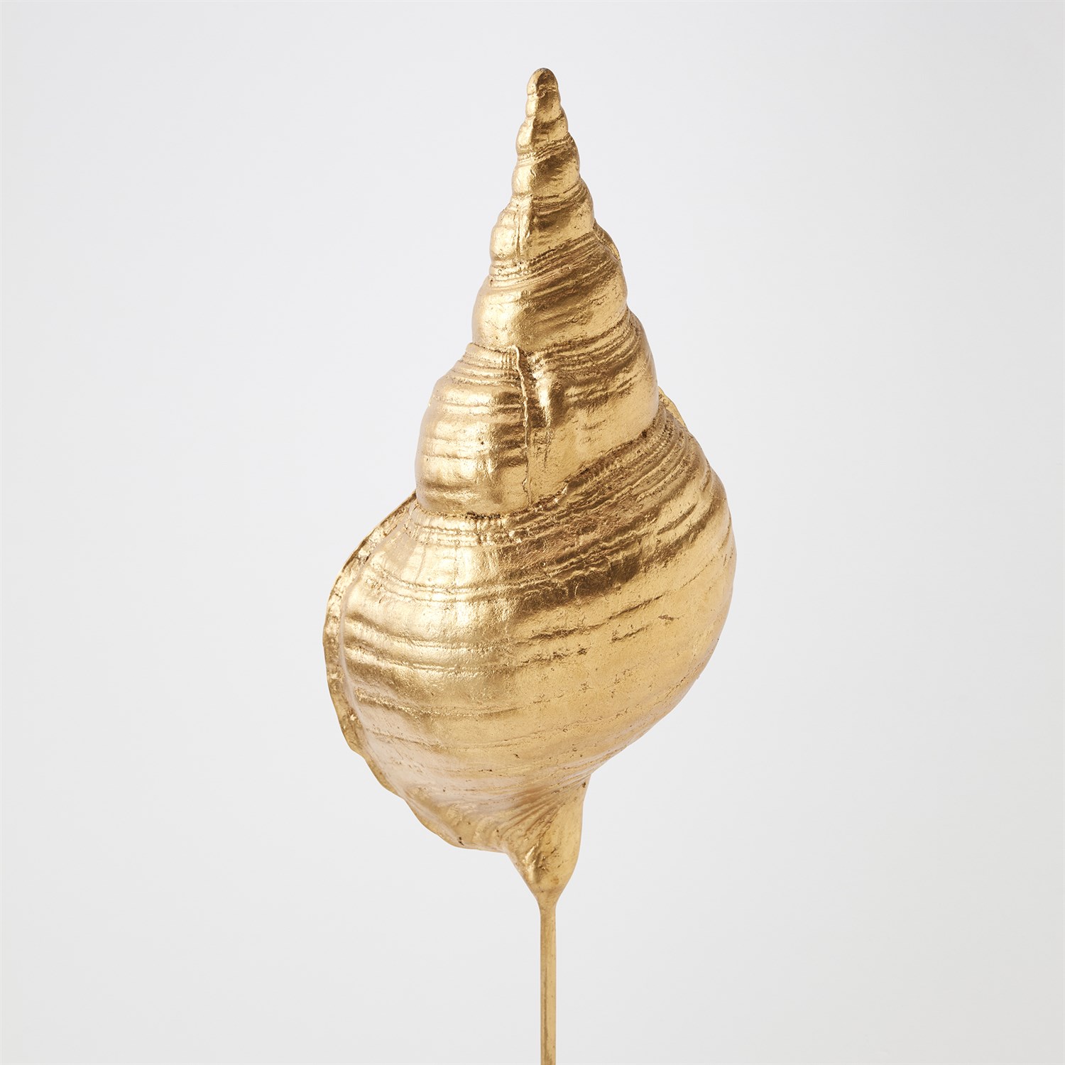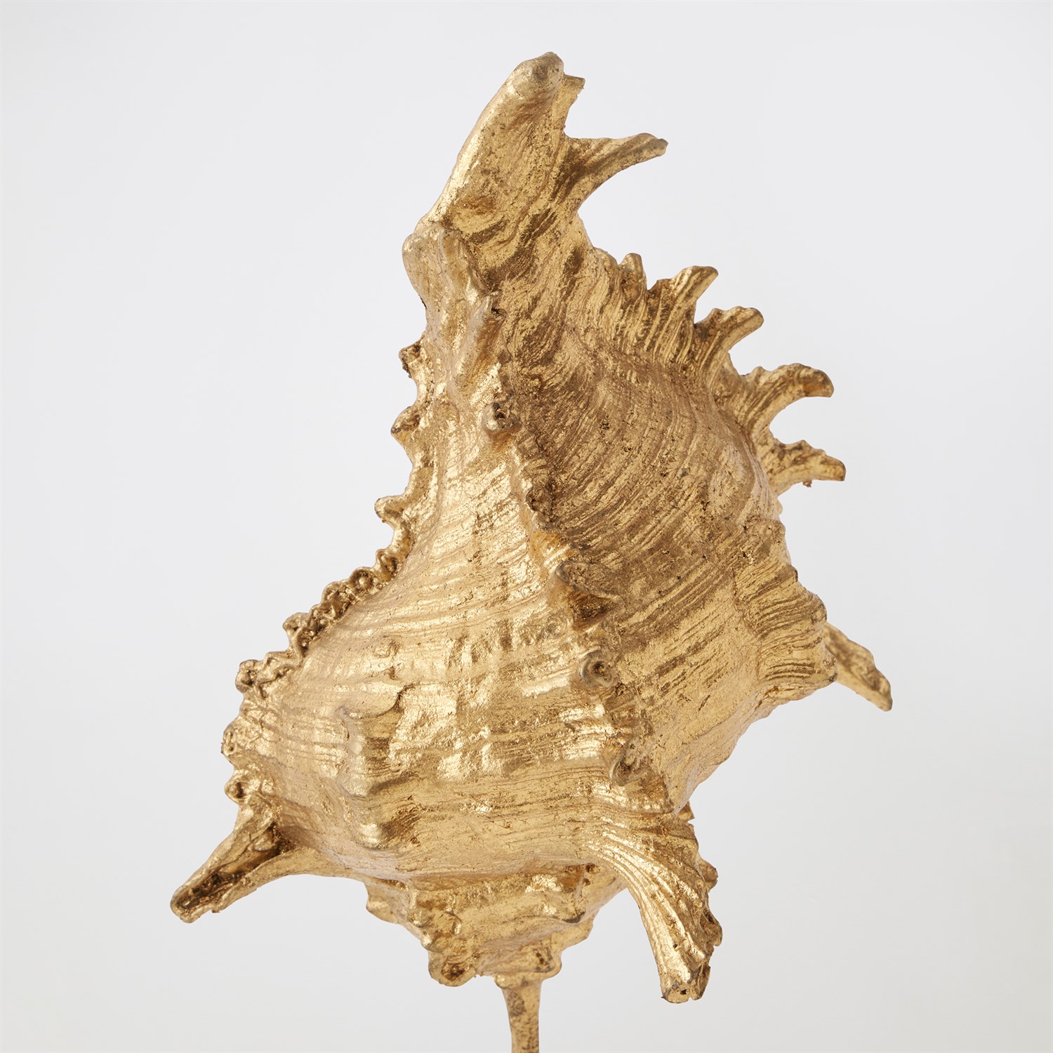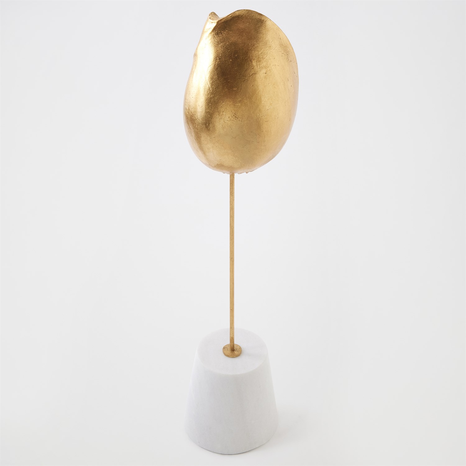 Finely detailed and sculpted in lost-wax cast iron, this exquisite sea shell is finished in gold leaf, evoking the opulence of ocean treasures. Museum-mounted on a honed white marble conical base, the piece pairs natural inspiration with refined artistry — a striking fusion of form, texture, and elegance. Available in large, medium, and small with three unique sea shell shapes.