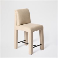 The Tamu seating collection pairs a fully upholstered form with a negative-pitch profile and fold-over pillow back for exceptional comfort. Available as a dining chair, counter stool, and bar stool—with bronze-finished metal stretchers on taller versions. Its generous curves and quiet presence evoke the enduring forms of African pachyderms. Only when the body rests will the heart speak freely.