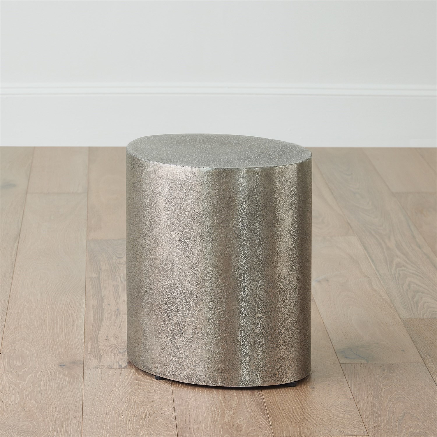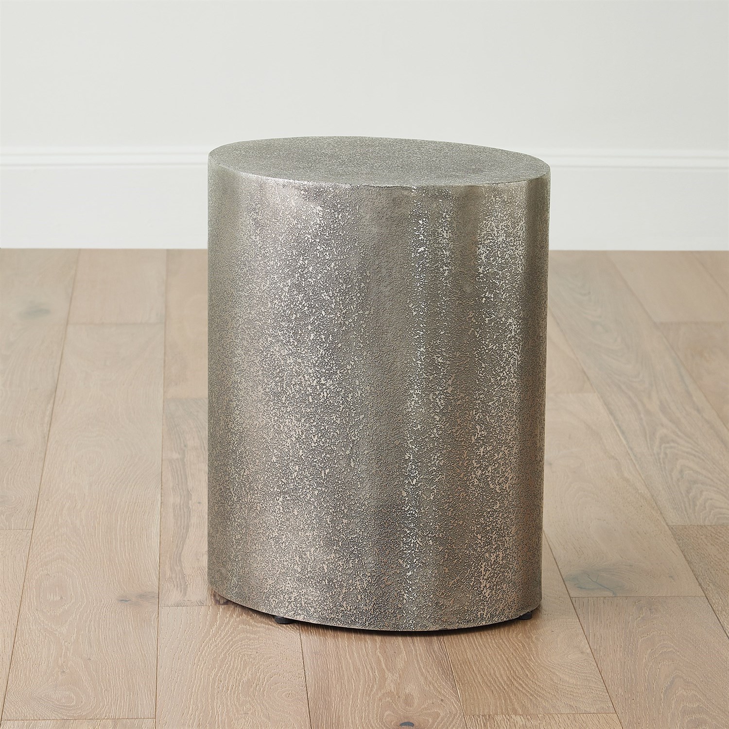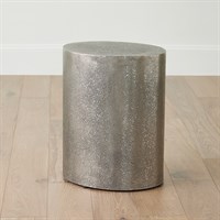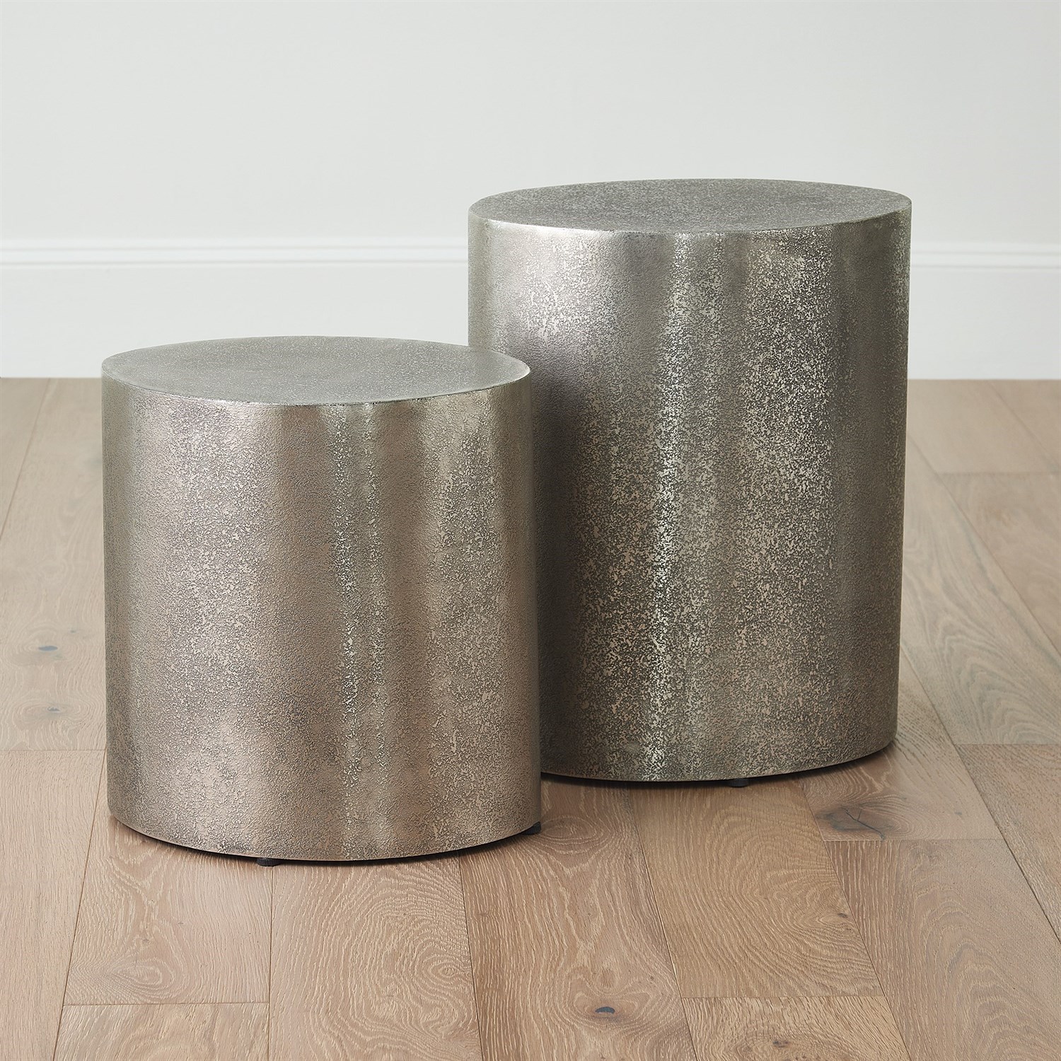 The Textured Drum Tables showcase a bold, textured iron construction with an antique nickel finish. Its striking design adds depth and sophistication, making it an ideal accent piece for any room.