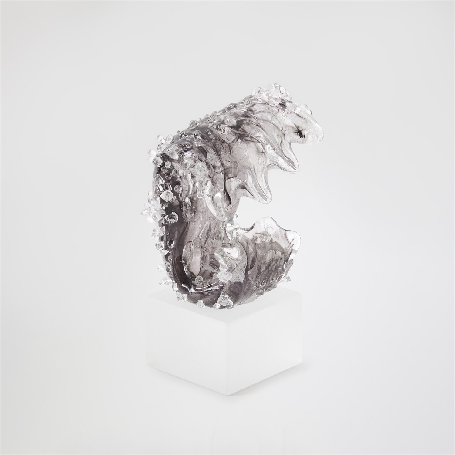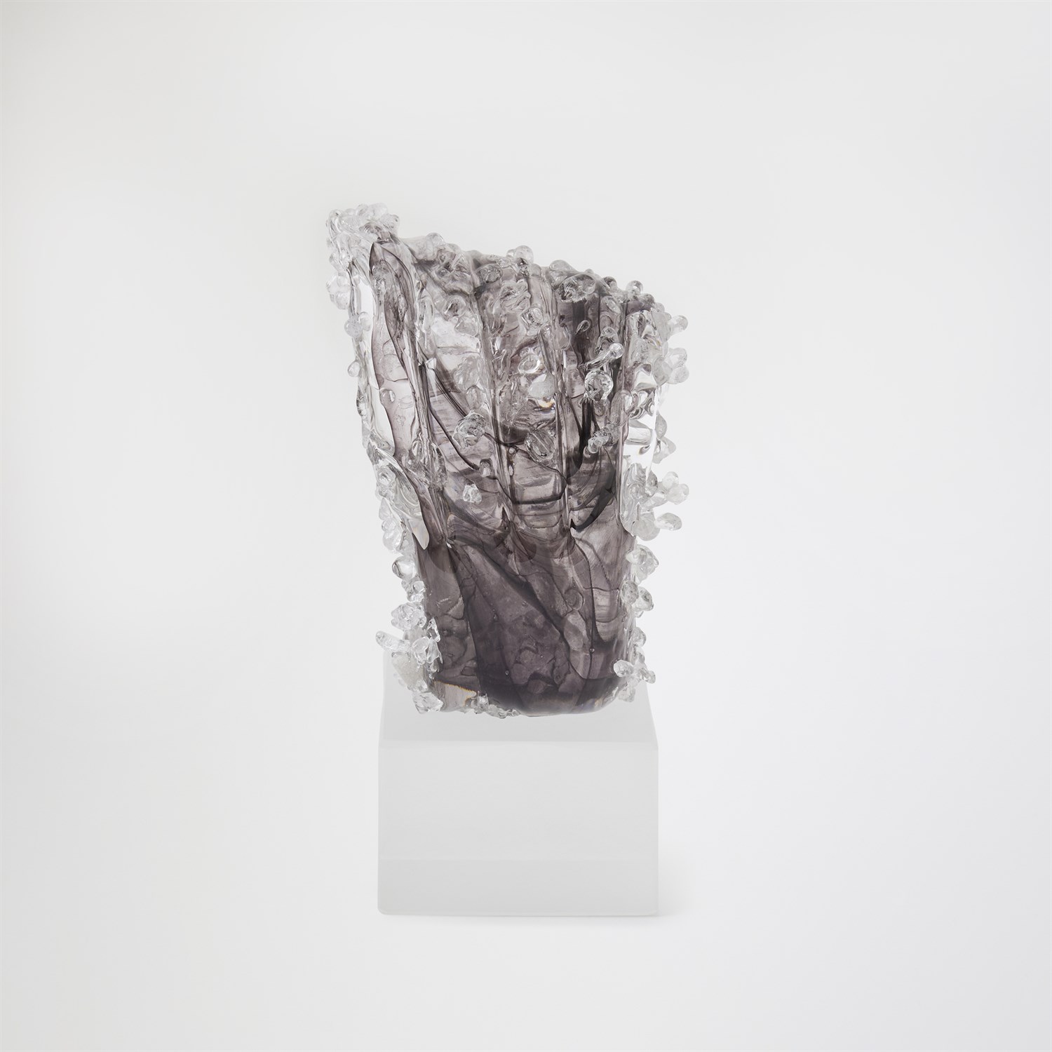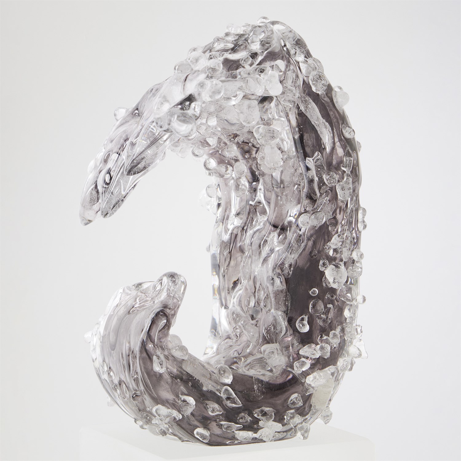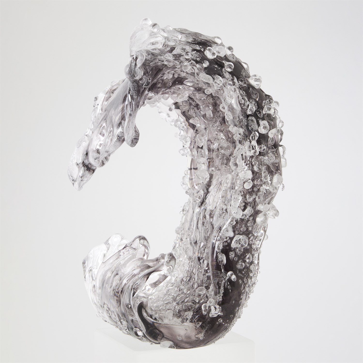 The Tidal Wave Sculpture in miniature size is meticulously crafted by skilled Polish artisans, capturing a dynamic display of power and movement in hand-blown art glass. Each piece is entirely unique, ensuring no two are alike. Offered in large and small sizes and available in sophisticated grey or brown tones, each is sold separately, allowing for curated, expressive arrangements.
