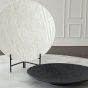 Nature is recreated in this extraordinary Tree Texture Collection. This plate is made with the relief of a burned Poplar tree. Part of the tree that died but, the remainder of the tree is still alive.Truly taken directly from tree bark, molds are cast to then reinterpret into vessels and decorative accessories. This charger is glazed in matte black and can be displayed on a charger stand.