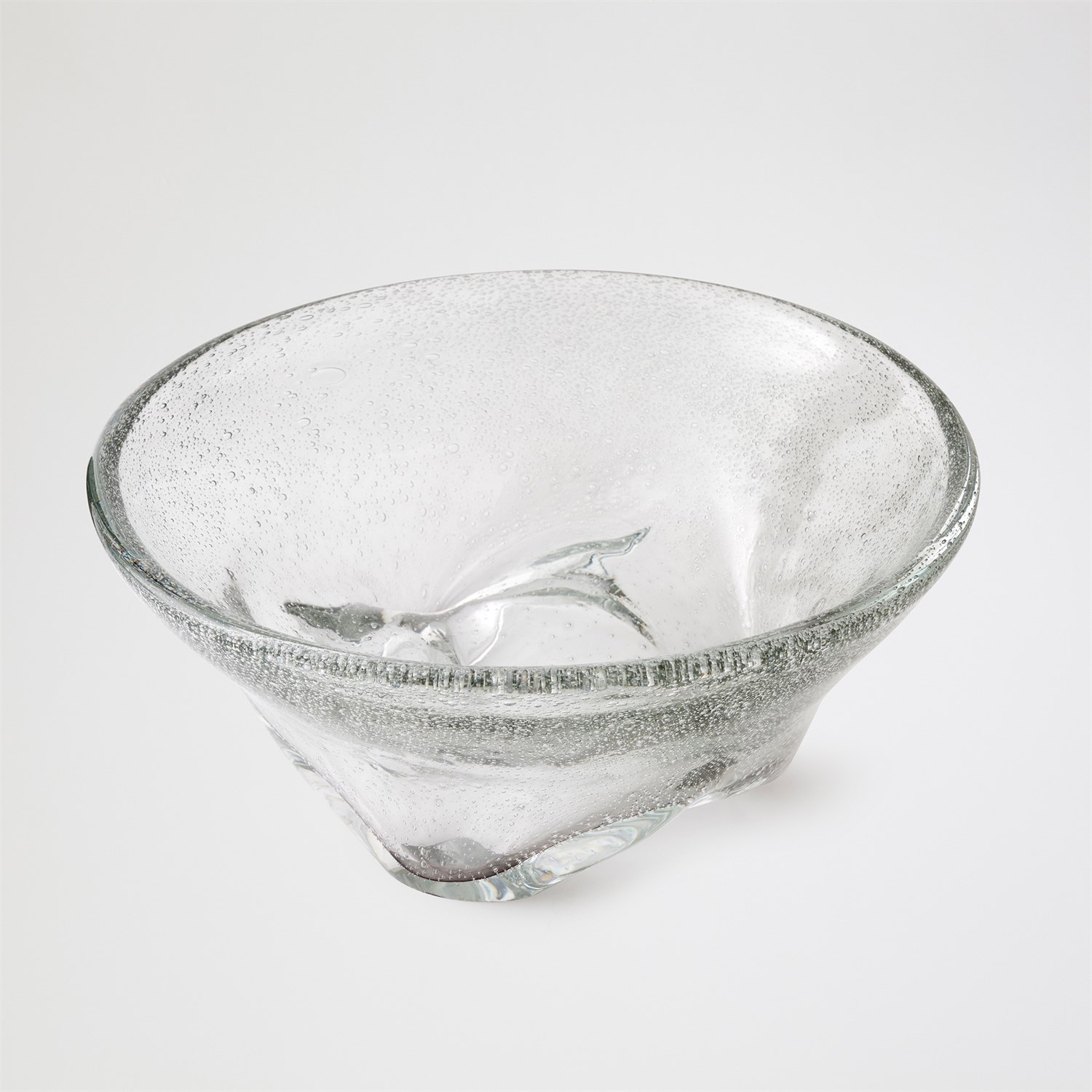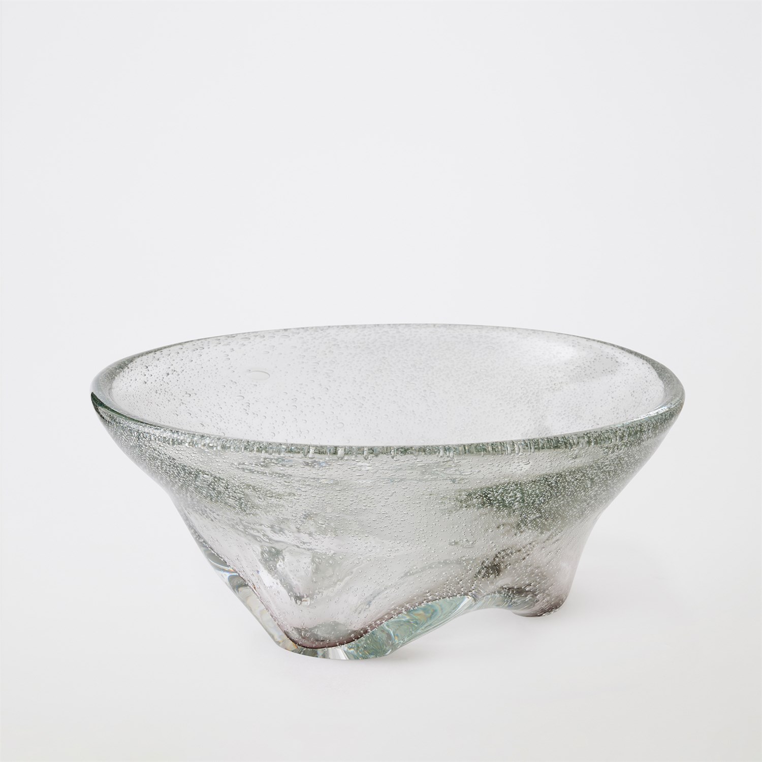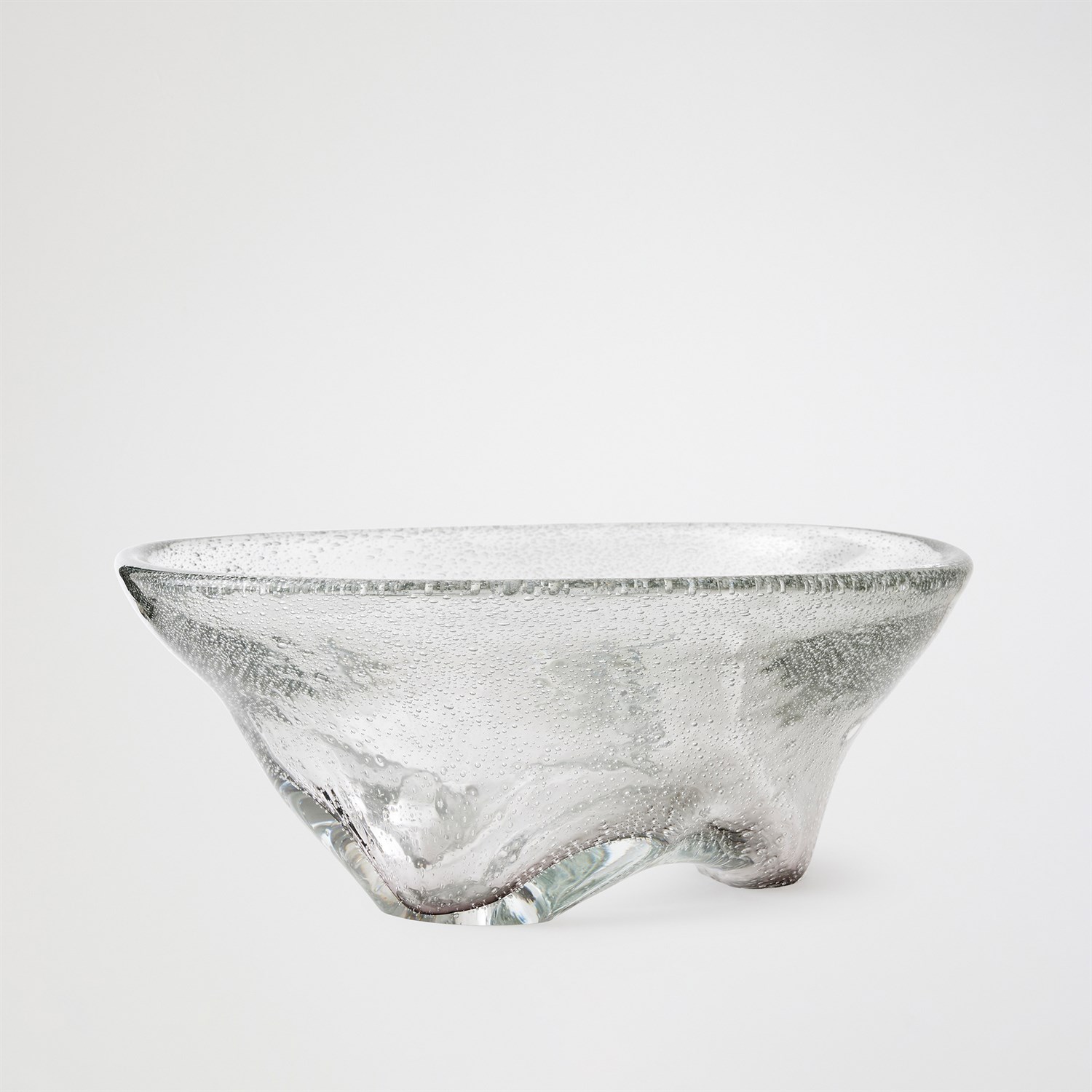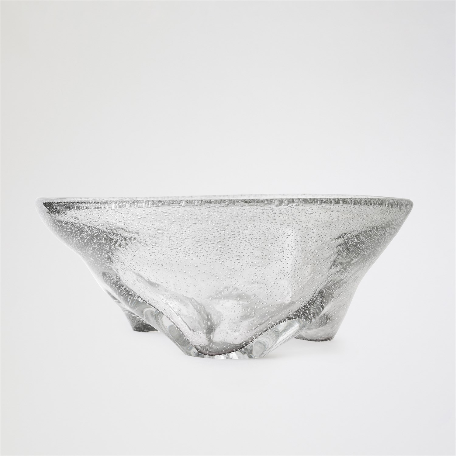 The Triad Footed Bowl is expertly mouth-blown and hand-formed by Polish artisans, marrying traditional craftsmanship with a modern-primitive aesthetic. Its sculptural form and artisanal texture make it a striking centerpiece, blending organic elegance with contemporary design in a gray finish.