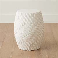 The Wave Garden Stool evokes a sense of movement with its undulating ceramic form and textured white finish. Suitable for interiors and covered outdoor spaces, this versatile piece serves as extra seating, a sculptural side table, or a compelling accent.