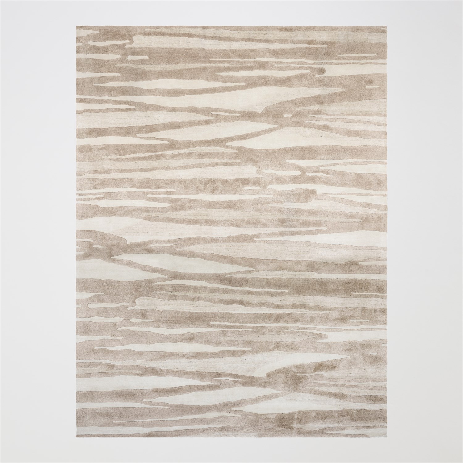 Looping ribbons of pattern and texture form the dynamic Wavelength rug. With deep dimensional bands of cream, taupe, and mocha, Wavelength exudes the gentle energy of sand dunes, making it the perfect complement to coastal, contemporary, and transitional design styles.